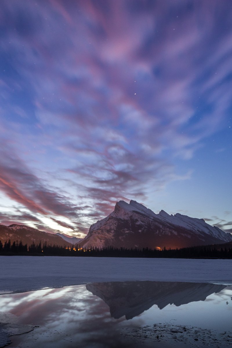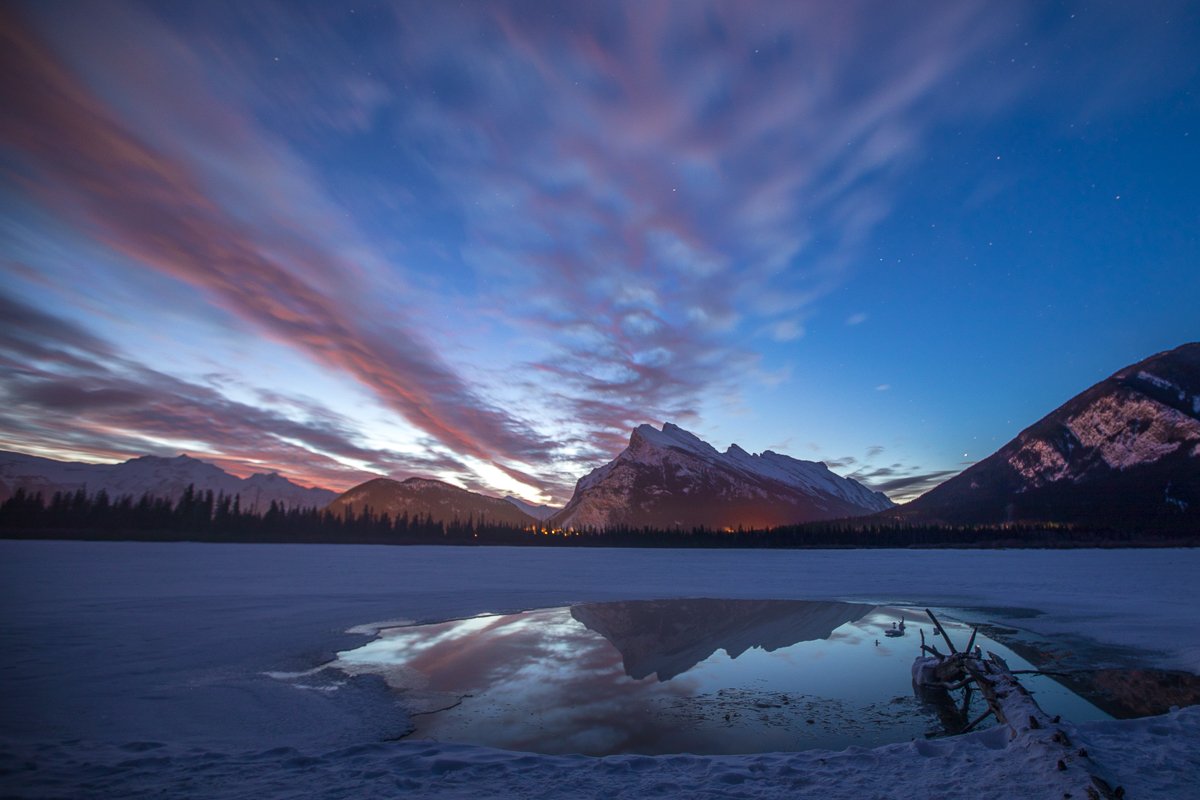2×3, Alberta, Astrophotography, Banff national park, Canada, Canadian Rockies, Lake, Landscape, Mountain, Night, Snow, Stars, Vermillion Lake, Winter, banff