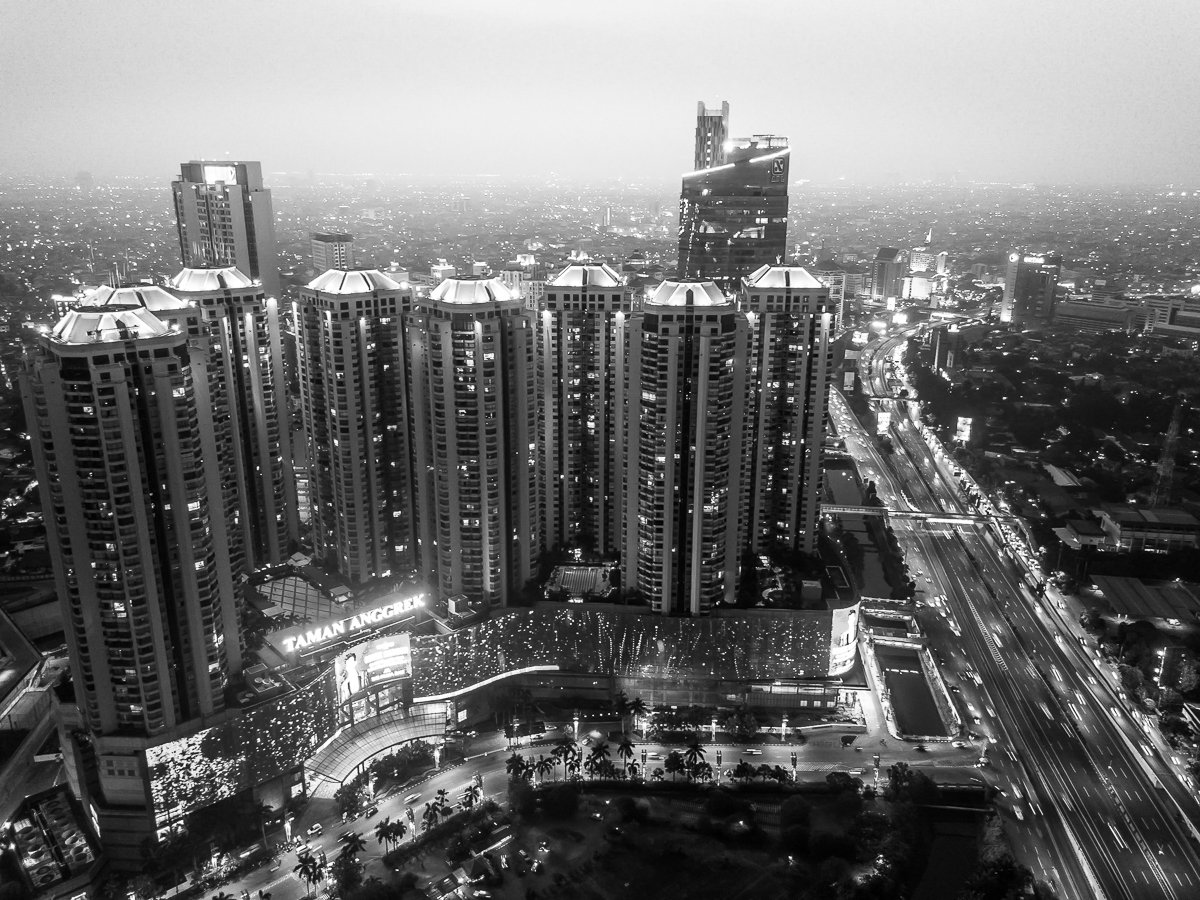 4×3, Aerial, Aerial Photography, Asia, Black and White, Cityscape, Drone, Indonesia, Jakarta, Night photography, street light