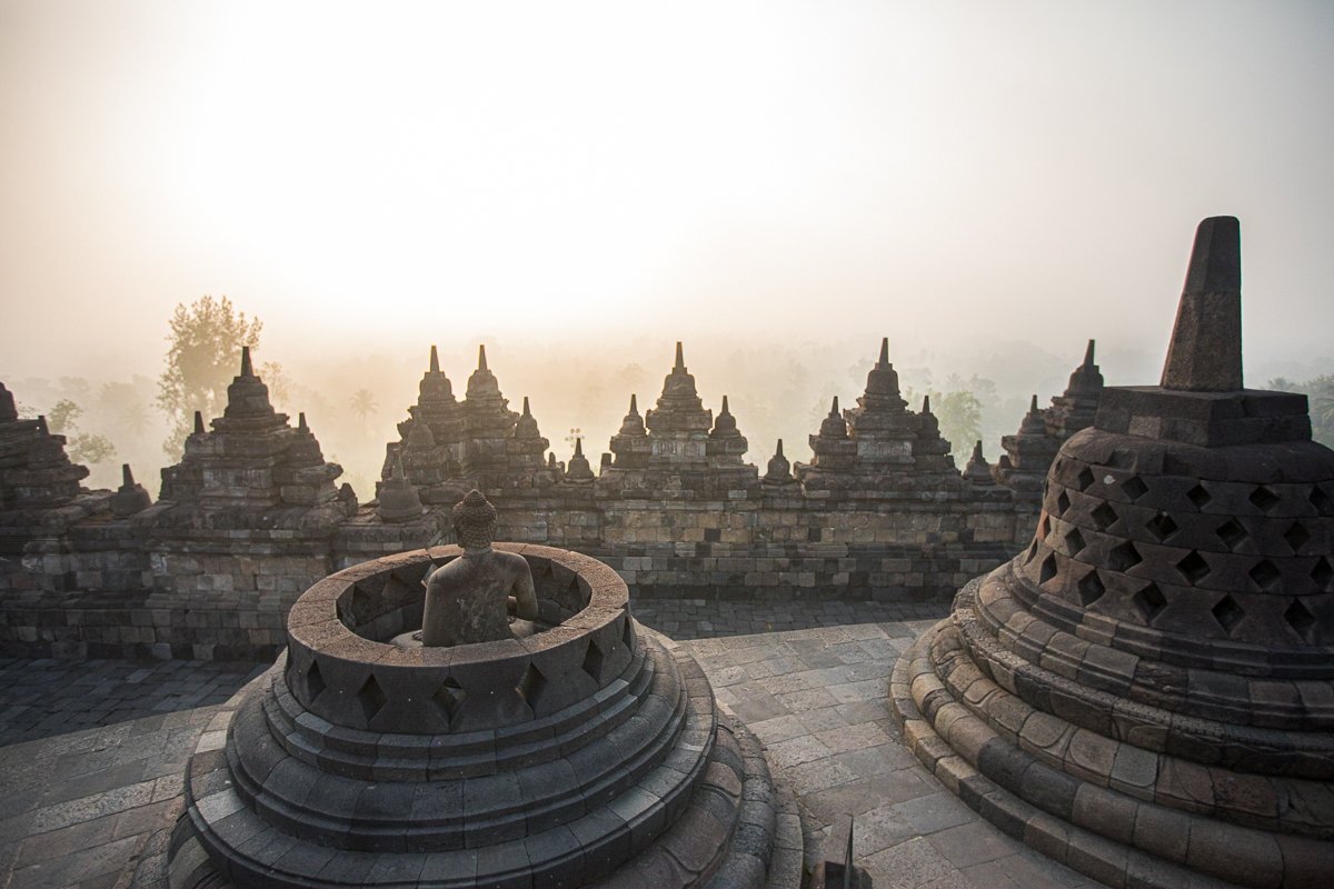 16×9, Asia, Black and White, Borobudur, Borobudur sunrise, Central Java, Indonesia, Sunrise, Yogyakarta