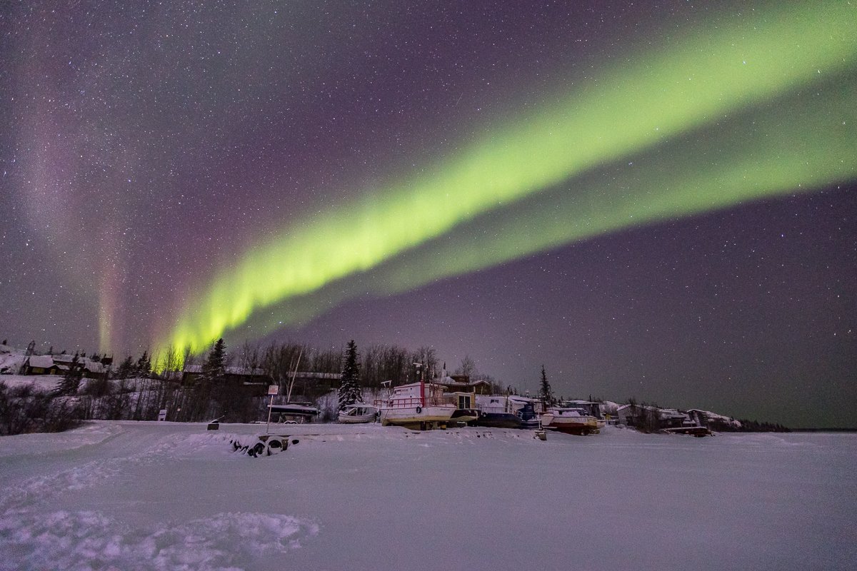2×3, Astrophotography, Aurora Borealis, Boat house, Canada, Night, Northern lights, Northwest Territory, Stars, Winter, Yellowknife