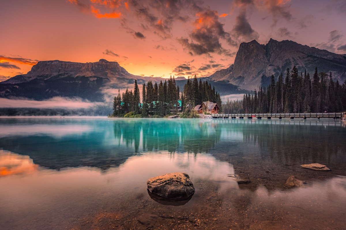 2×3, Banff national park, British Columbia, Canada, Canadian Rockies, Mountain, Summer, Sunrise, architecture, banff, emerald lake