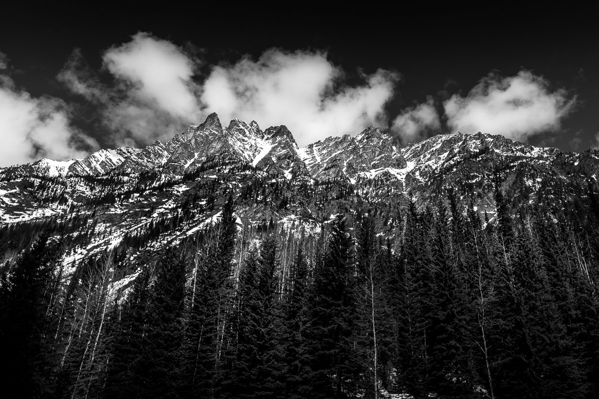 2×3, Black and White, British Columbia, Canada, Mountain, Snow, emerald lake