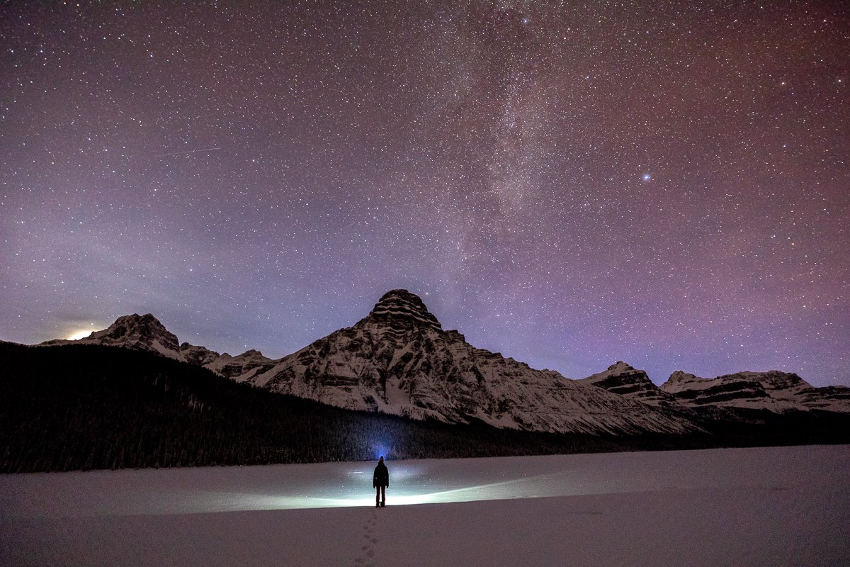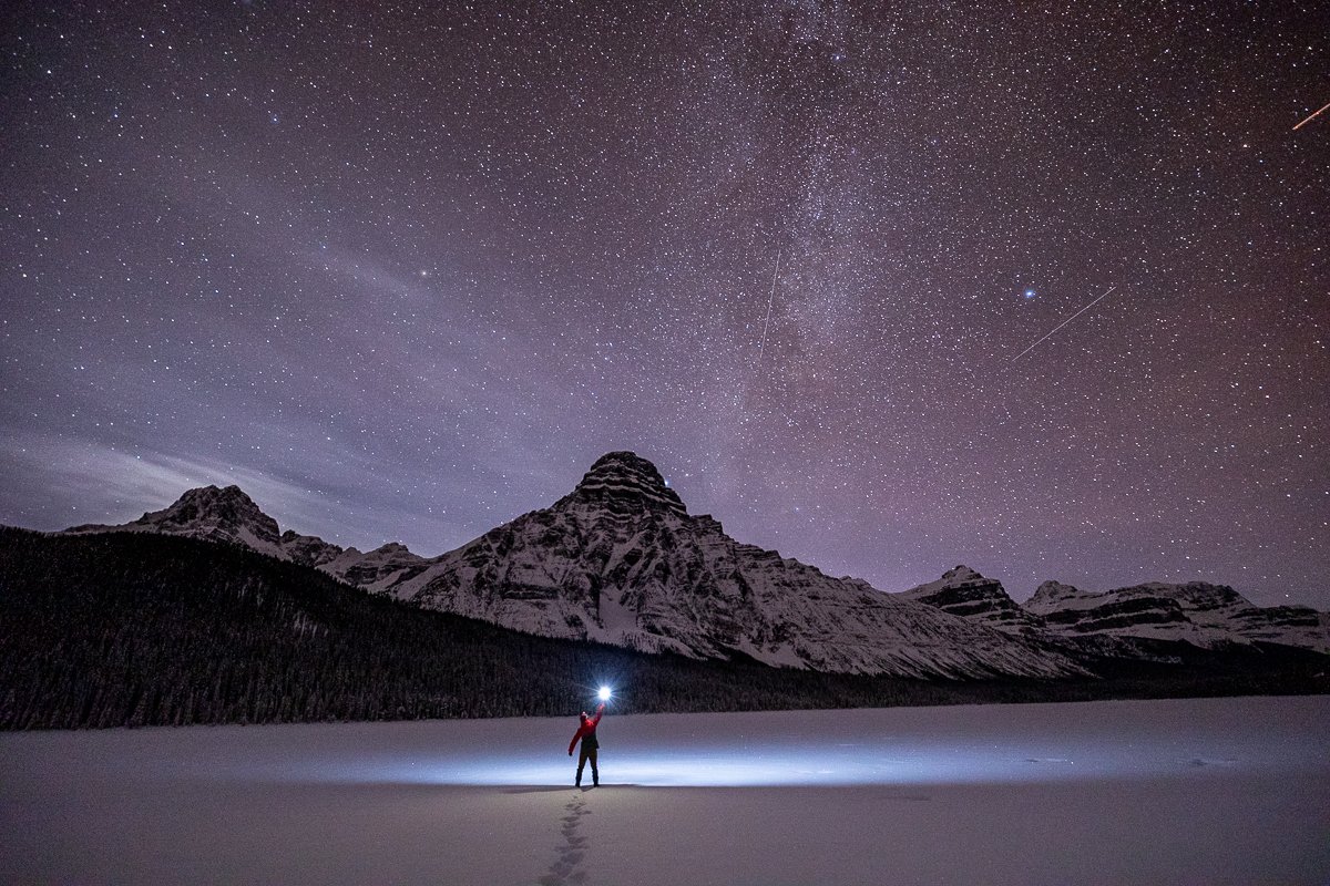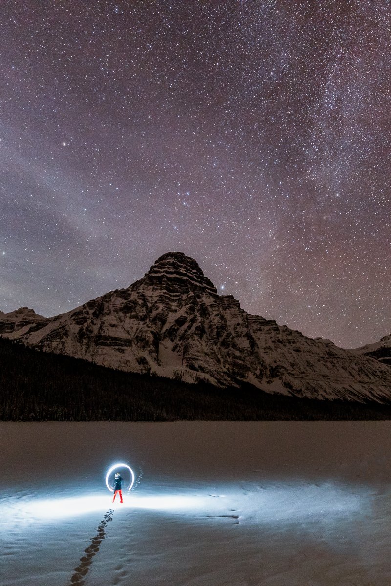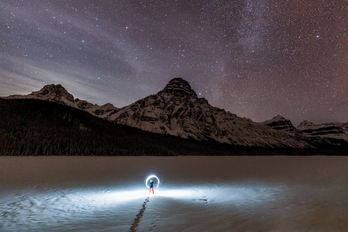 2×3, Alberta, Canada, Canadian Rockies, Lake, Landscape, Mountains, Snow, Stars, Waterfowl lake, Winter, self-portrait