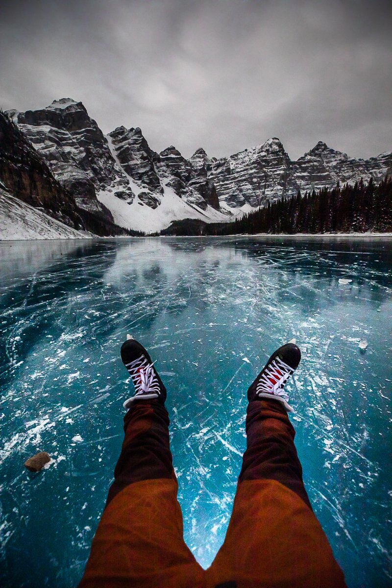 2×3, Alberta, Canada, Canada Rockies, Canadian Rockies, Frozen Lake, Moraine Lake, self-portrait