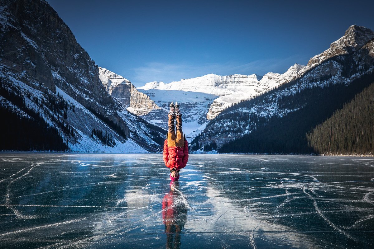 2×3, Alberta, Canada, Canada Rockies, Canadian Rockies, Frozen Lake, Lake, Lake Louise, Mountains, Snow, Winter, self-portrait