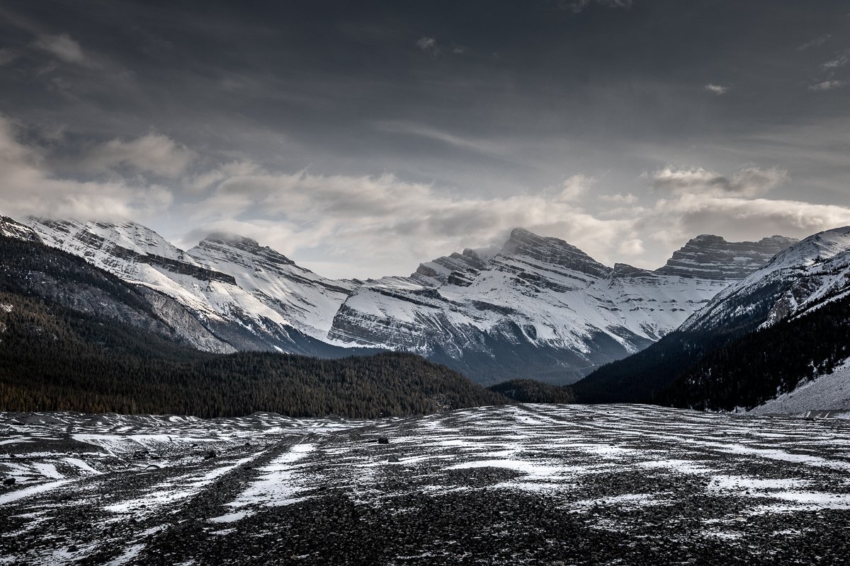 2×3, Alberta, Black and White, Canada, Canada Rockies, Canadian Rockies, Icefield Parkway, Landscape, Mountains, Snow, Winter