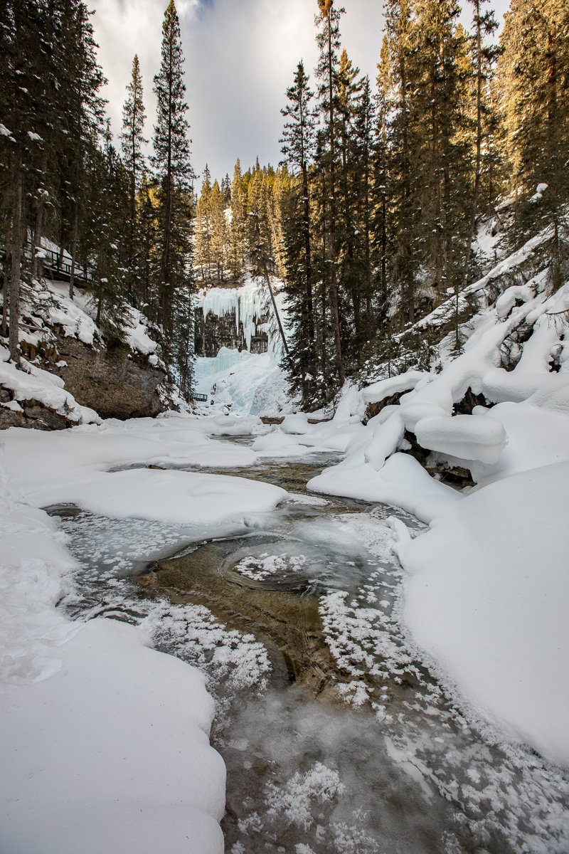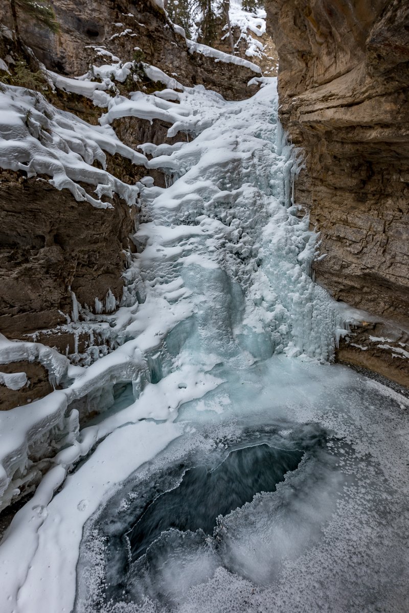 2×3, Alberta, Banff national park, Canada, Canadian Rockies, Johnson Canyon, Lake, Landscape, Snow, Winter, waterfalls