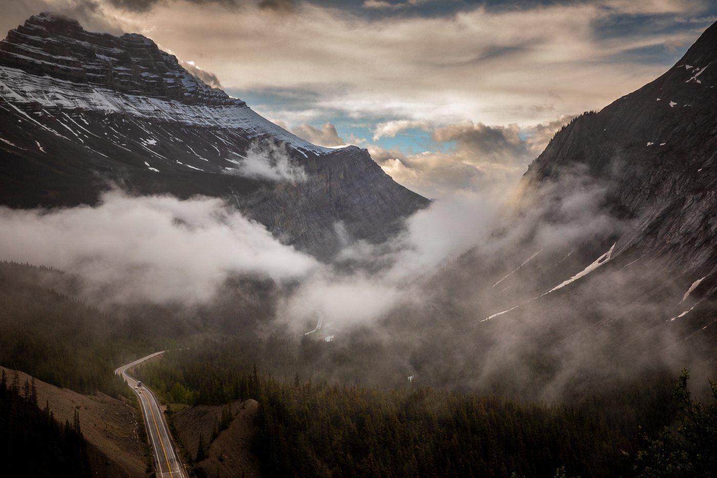 2×3, Alberta, Banff national park, Canada, Canadian Rockies, Foggy, Icefield Parkway, Mountain