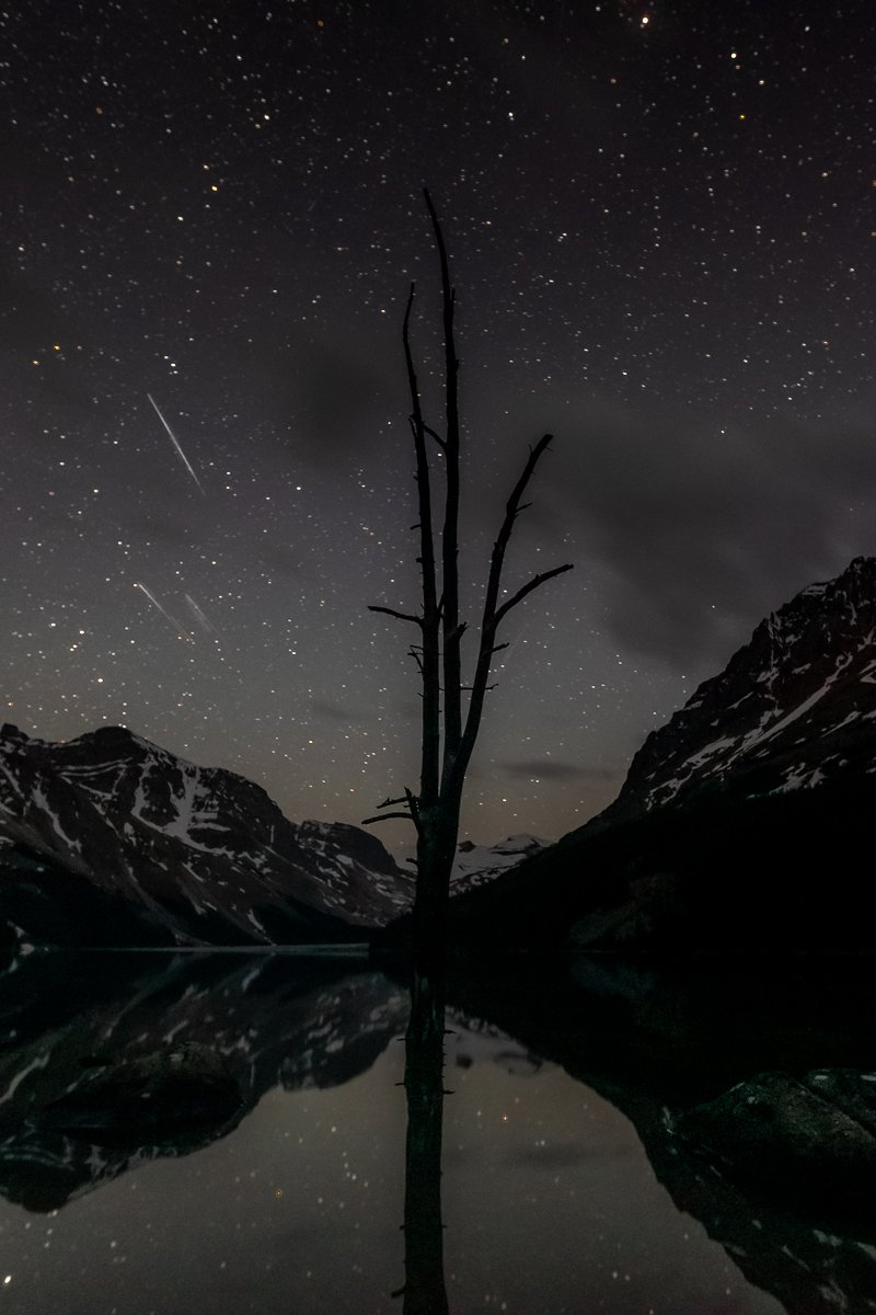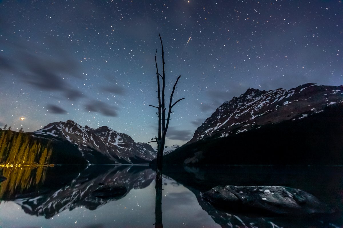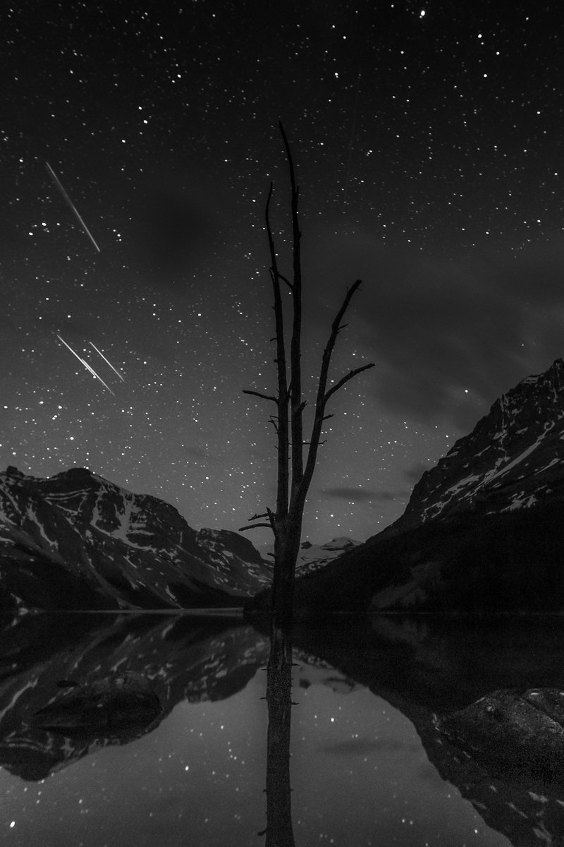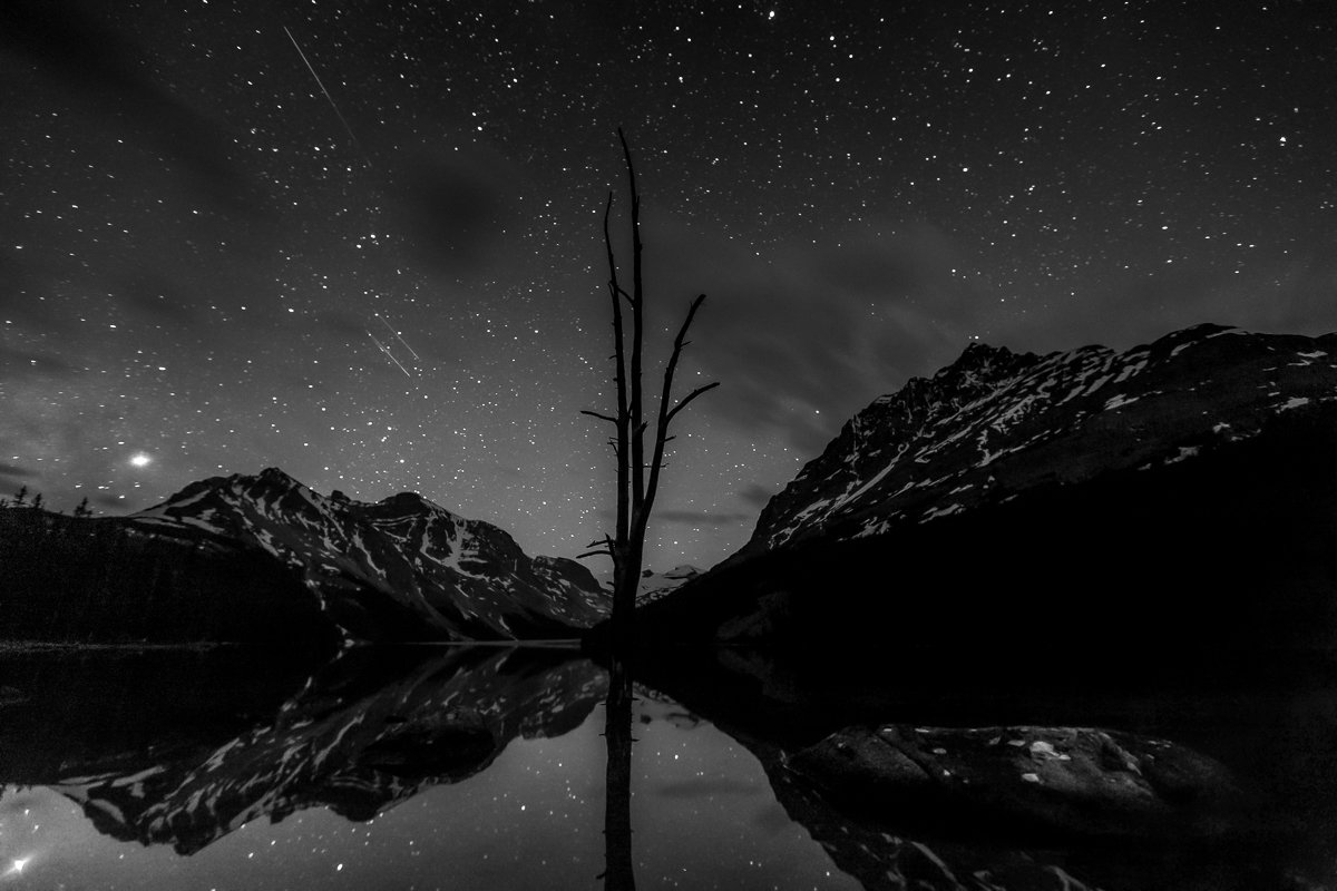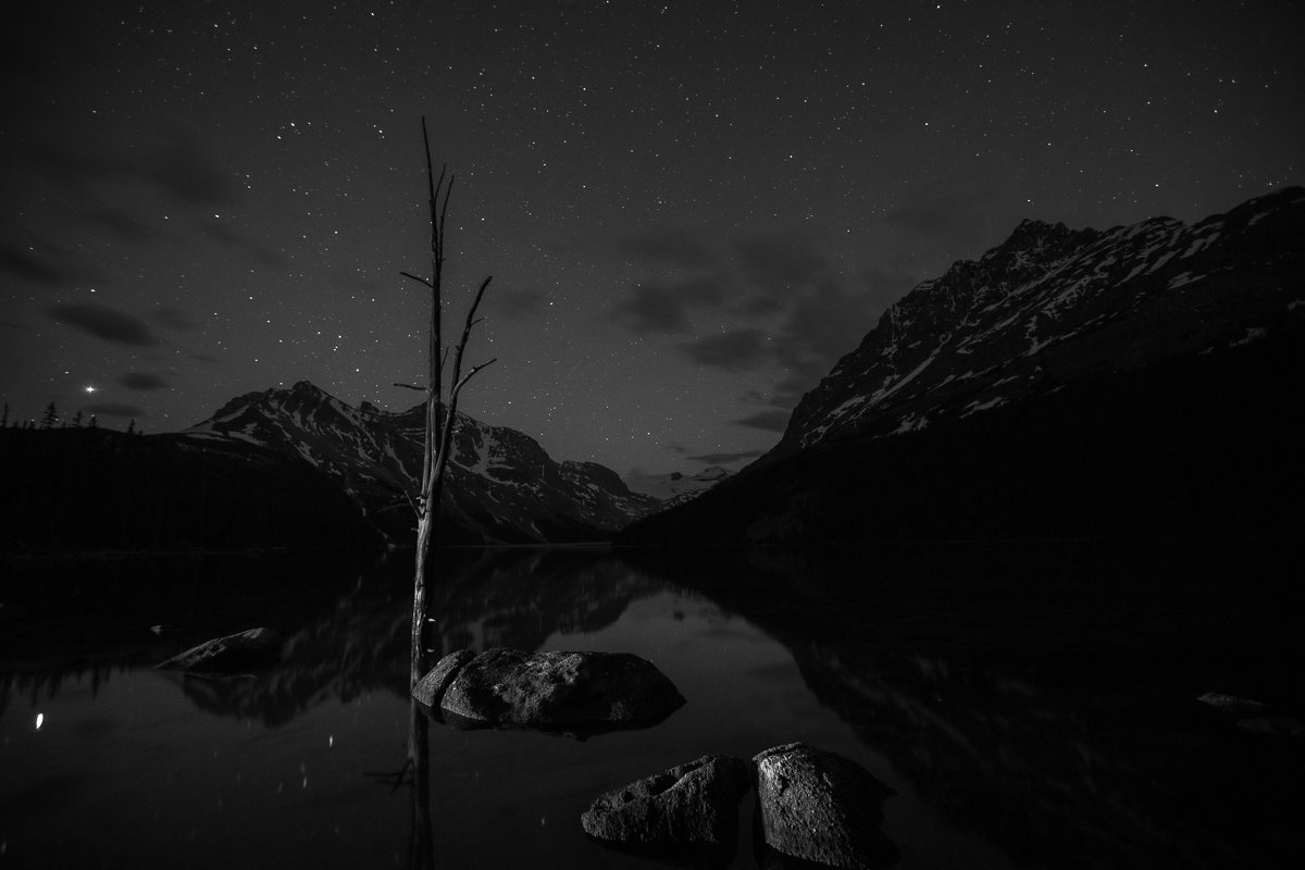 2×3, Alberta, Astrophotography, Black and White, Canada, Canadian Rockies, Icefield Parkway, Jasper National Park, Landscape, Night, Peyto Lake, Stars