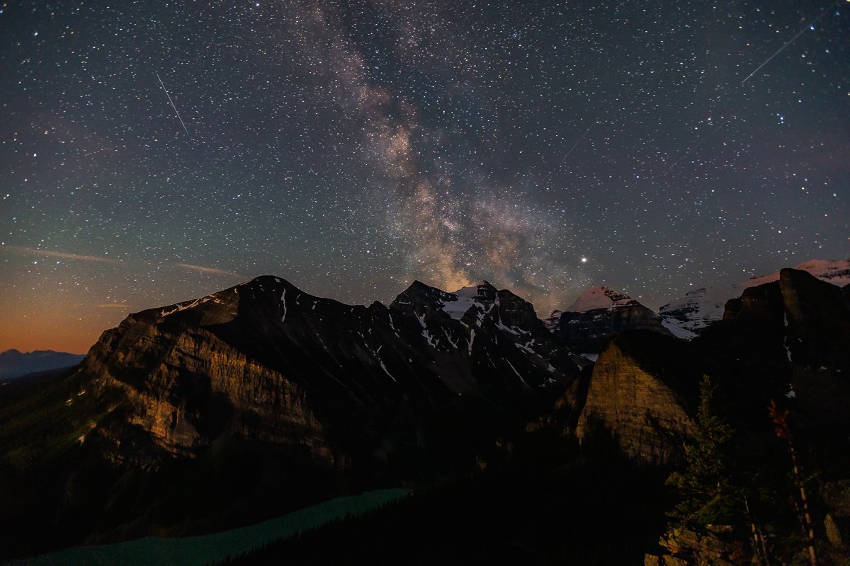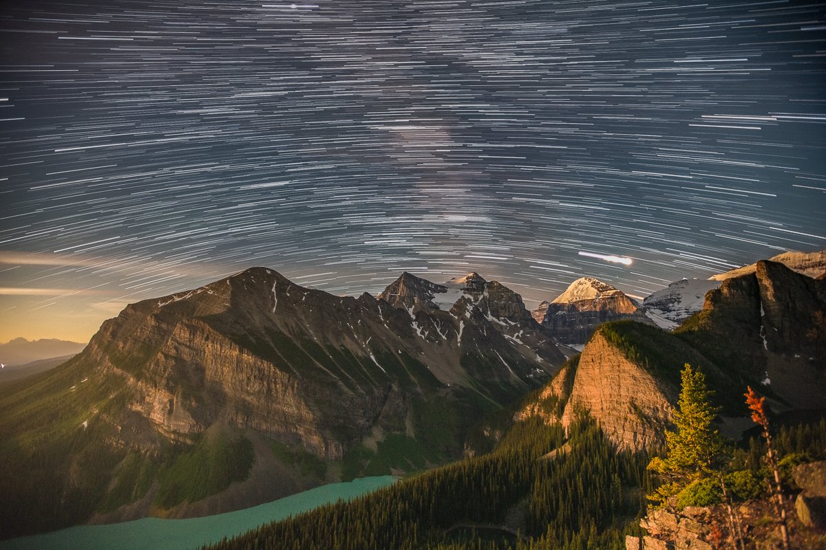 2×3, Alberta, Astrophotography, Banff national park, Canada, Canadian Rockies, Lake Louise, Landscape, Little Beehive, Night, Stars