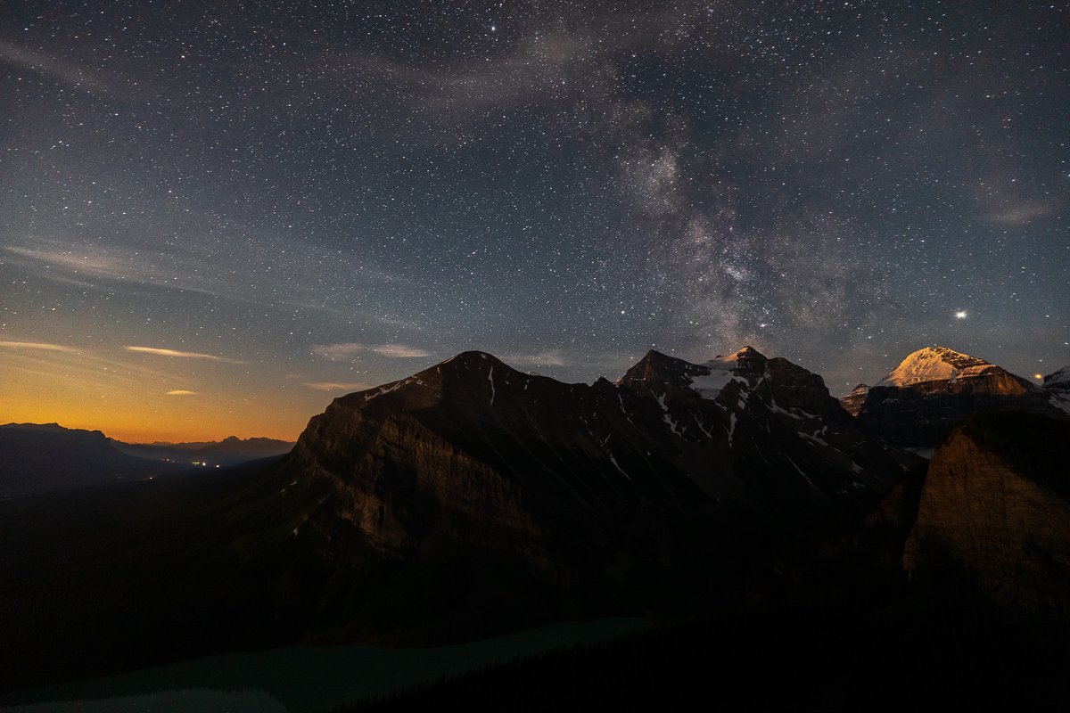 2×3, Alberta, Astrophotography, Banff national park, Canada, Canadian Rockies, Lake Louise, Landscape, Little Beehive, Milkyway, Night, Stars