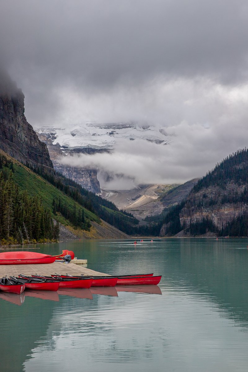 2×3, Alberta, Canada, Canadian Rockies, Devils Thumb, Foggy, Lake Louise, Landscape, Mountain