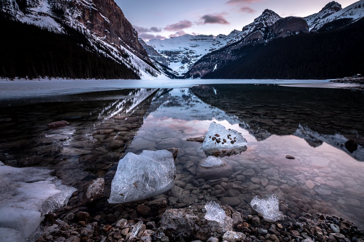 3×4, Alberta, Banff national park, Canada, Canadian Rockies, Lake, Lake Louise, Landscape, Sunset, Winter