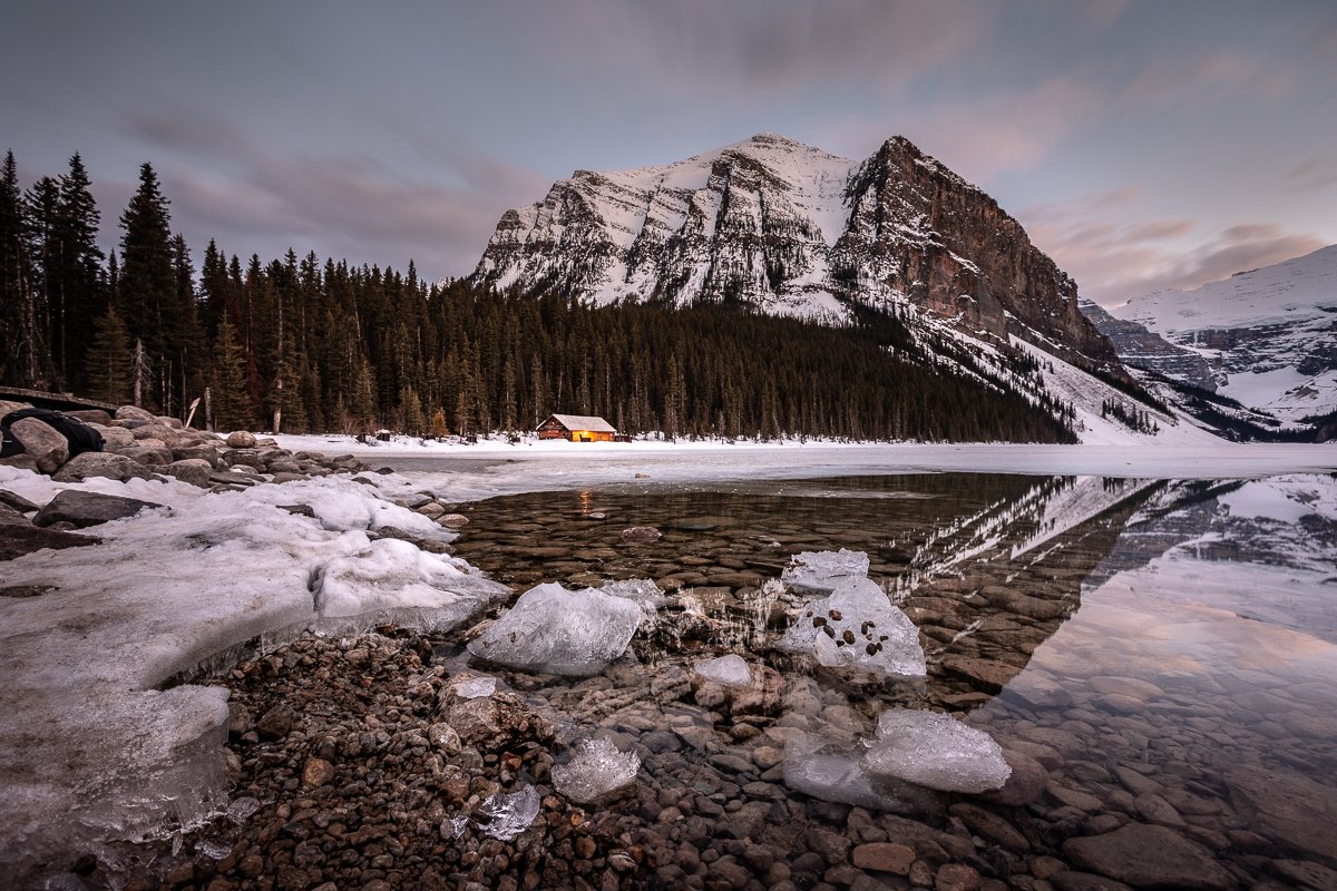 2×3, Alberta, Banff national park, Canada, Canadian Rockies, Lake, Lake Louise, Landscape, Sunset, Winter