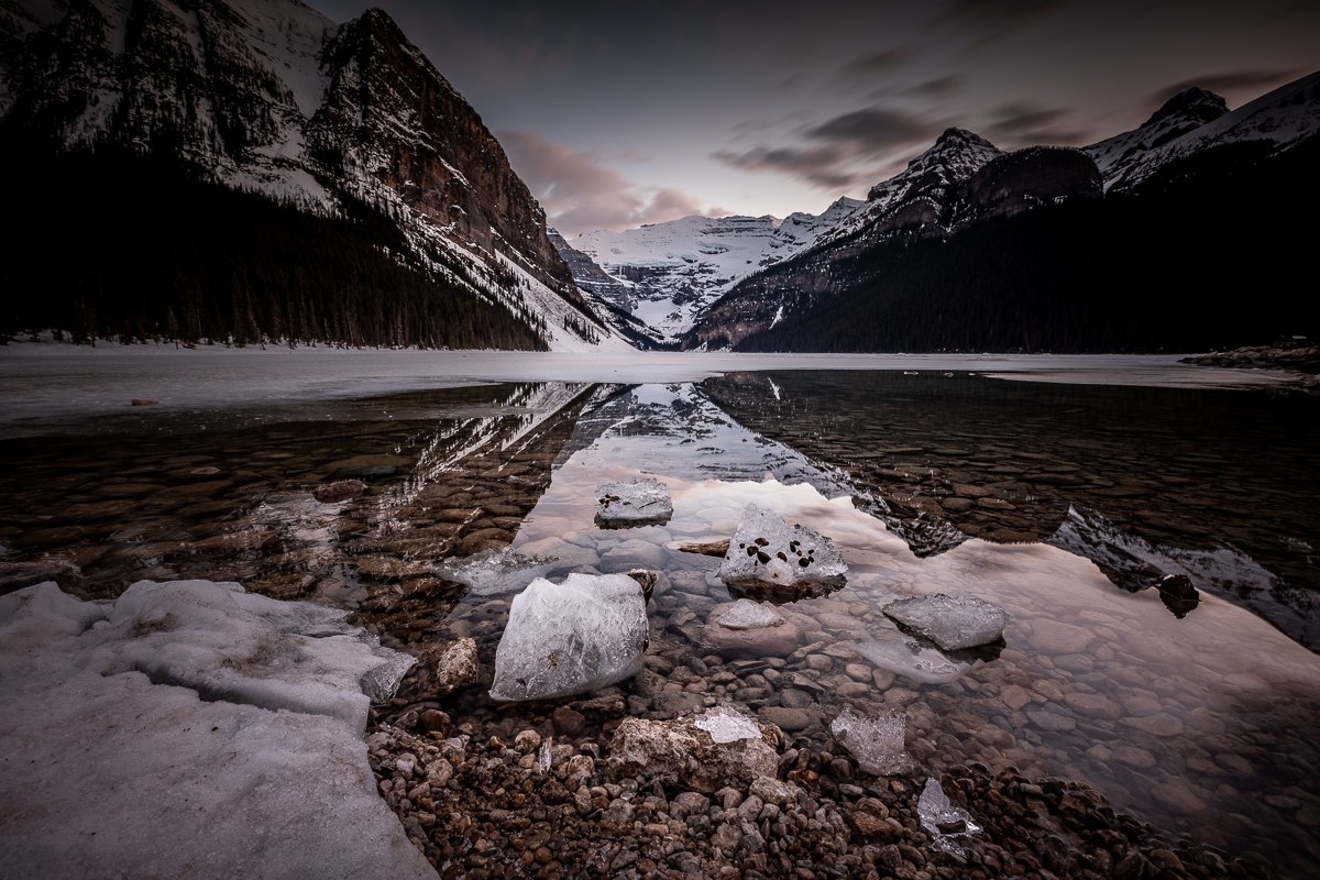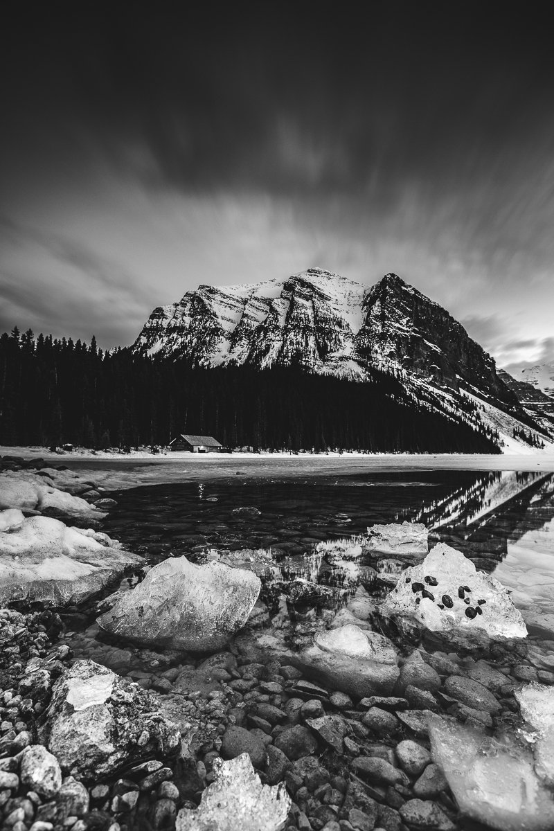 2×3, Alberta, Banff national park, Black and White, Canada, Canadian Rockies, Lake, Lake Louise, Landscape, Mountain, Winter
