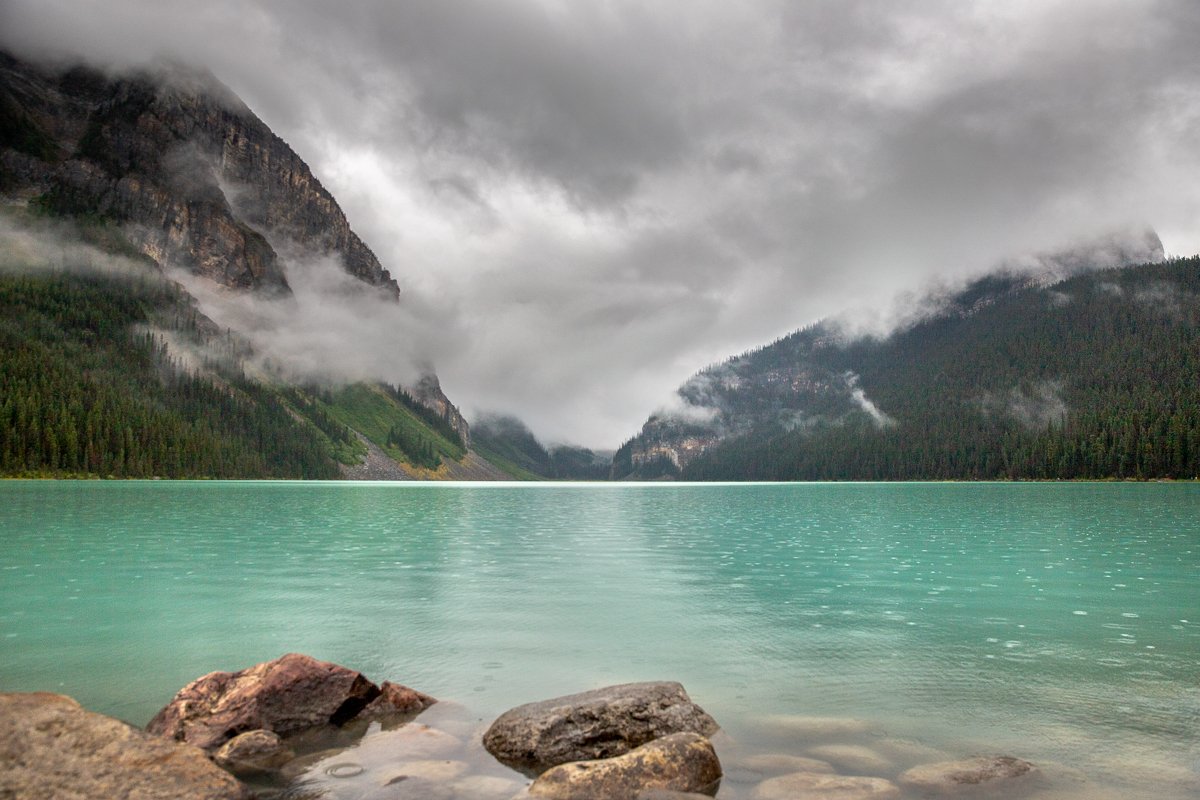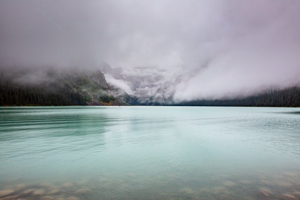 2×3, Alberta, Banff national park, Canada, Canadian Rockies, Foggy, Lake, Lake Louise, Mountain