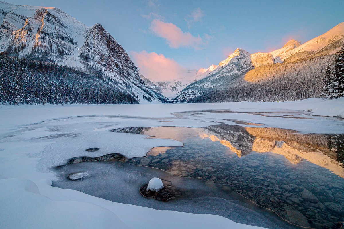 Alberta, Canada, Canada Rockies, Canadian Rockies, Lake, Lake Louise, Landscape, Mountain, Mountains, Sunrise, Winter