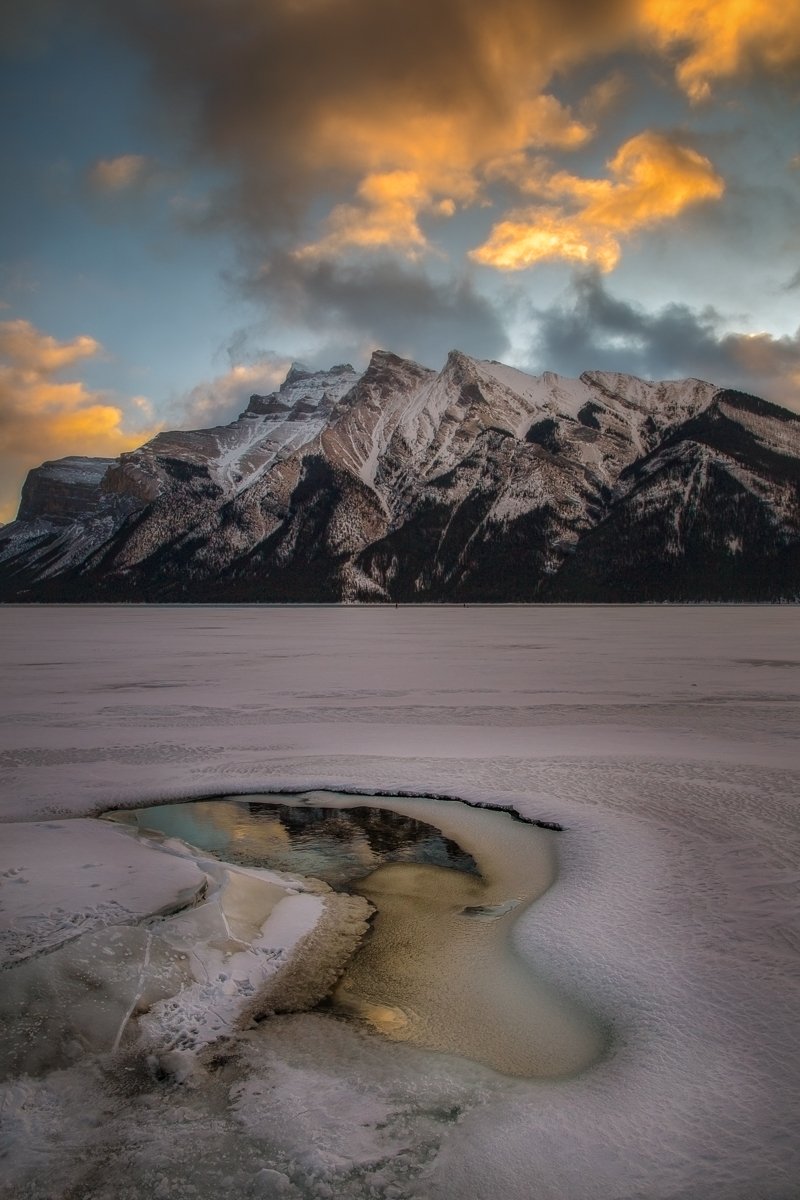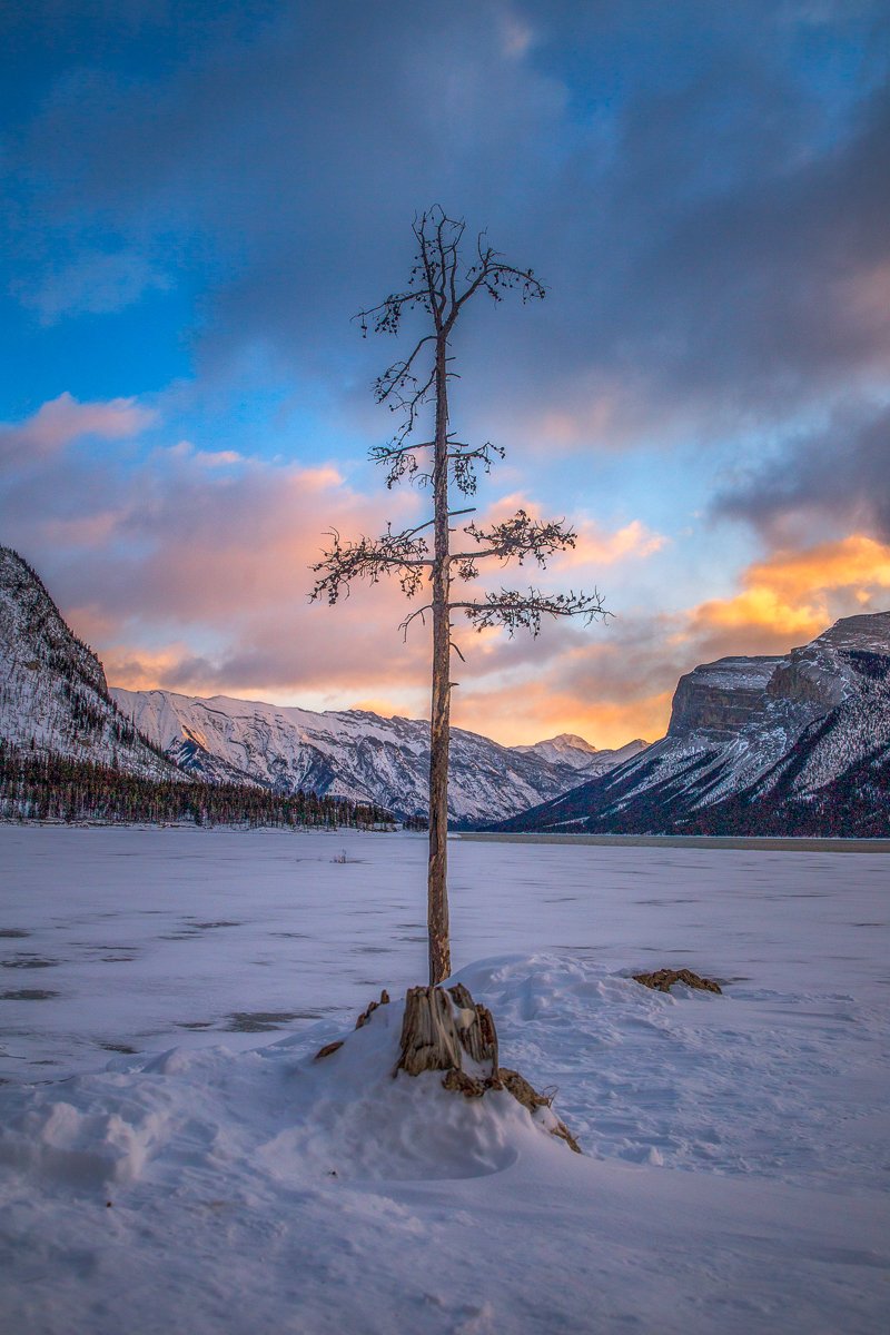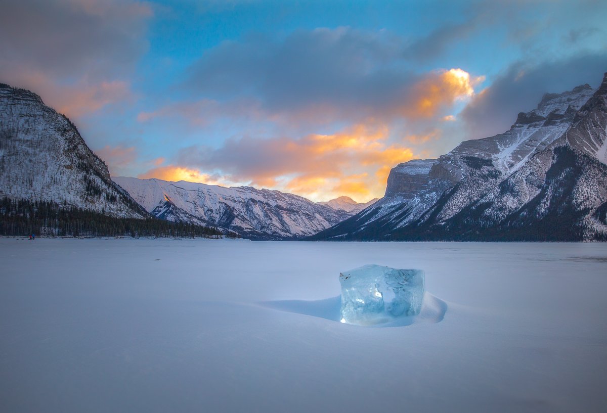 2×3, Alberta, Canada, Canadian Rockies, Lake, Lake Minnewanka, Landscape, Mountains, Snow, Sunrise, Winter