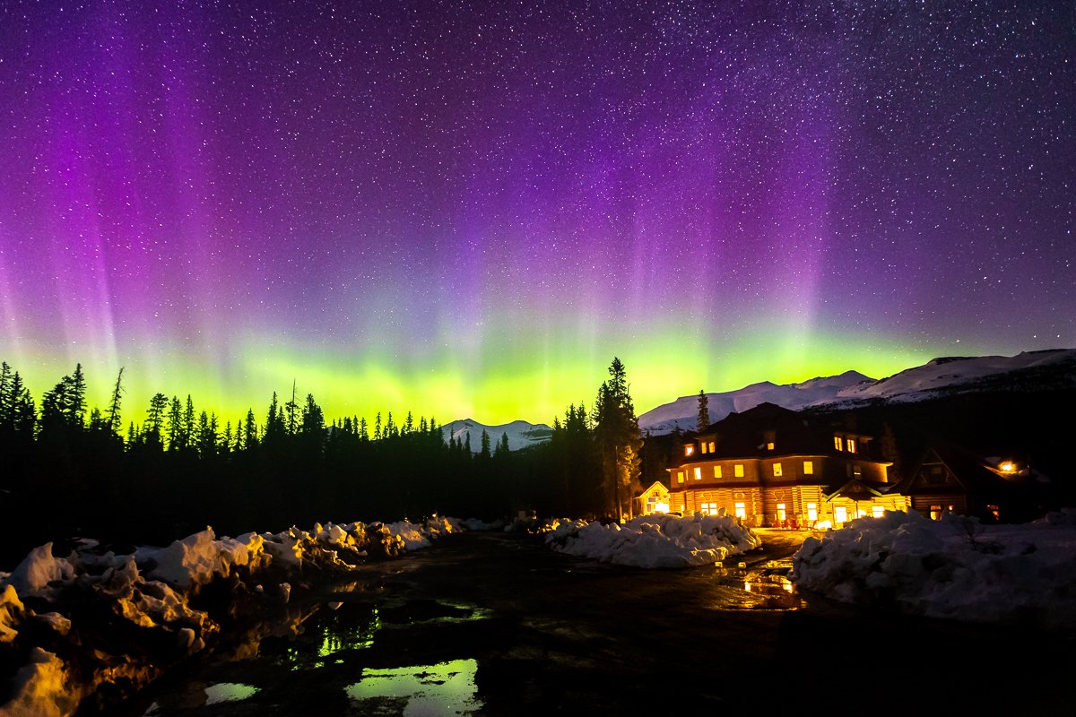 3×4, Alberta, Astrophotography, Aurora Borealis, Bow Lake, Canada, Canadian Rockies, Icefield Parkway, Lake, Landscape, Night, Northern Light, Stars, Winter, architecture