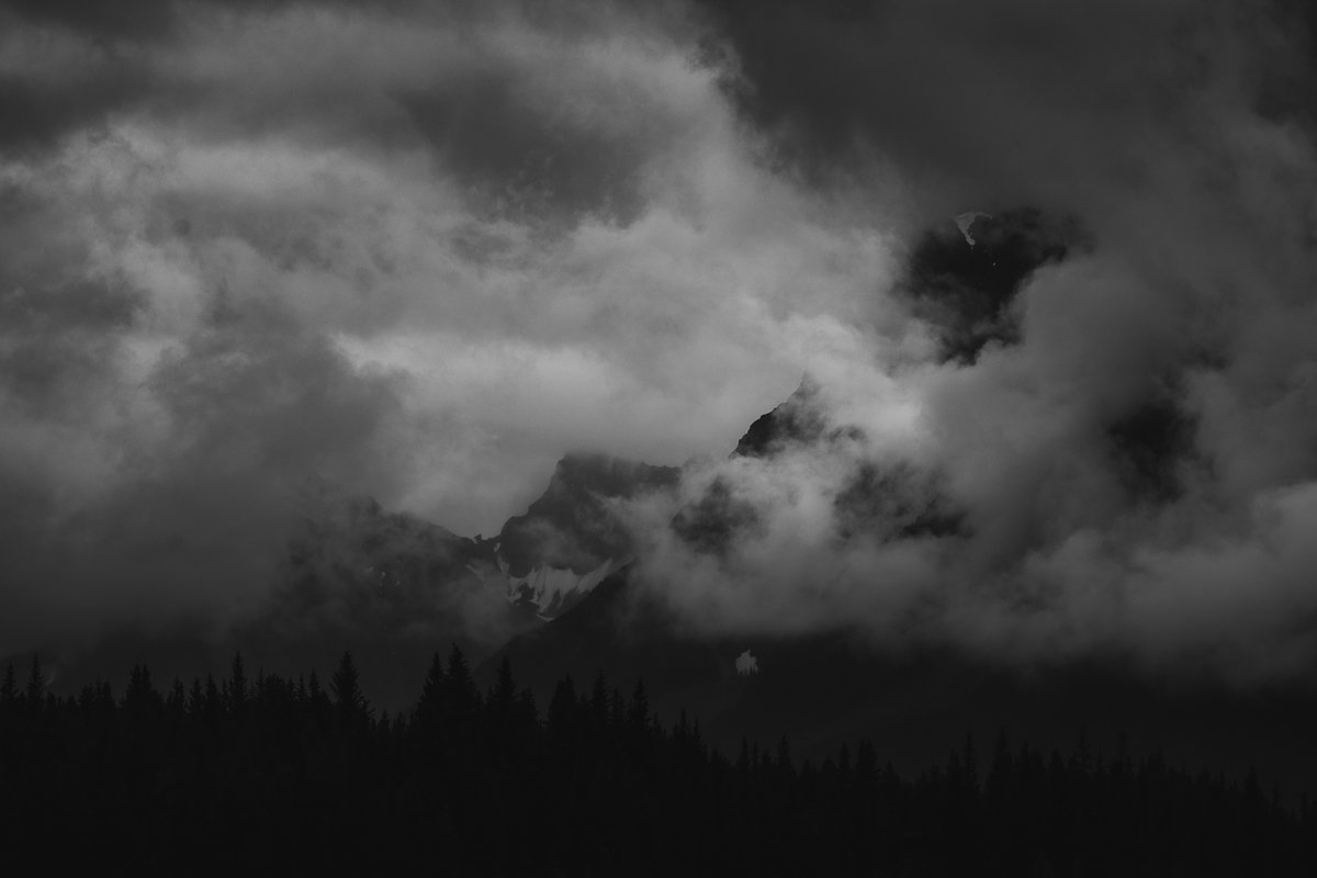 2×3, Alberta, Banff national park, Black and White, Canada, Canadian Rockies, Foggy, Glacier, Landscape