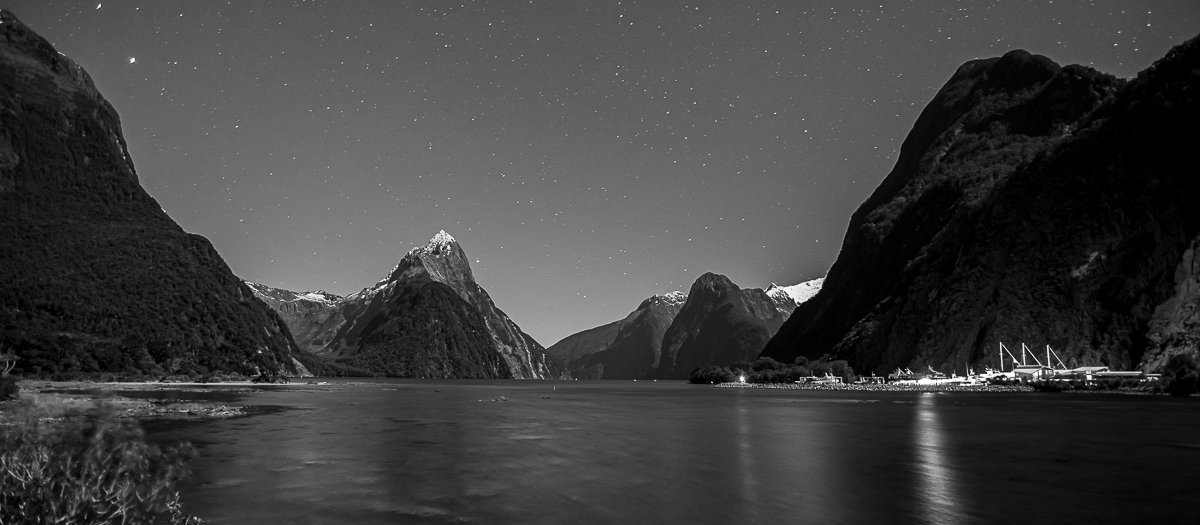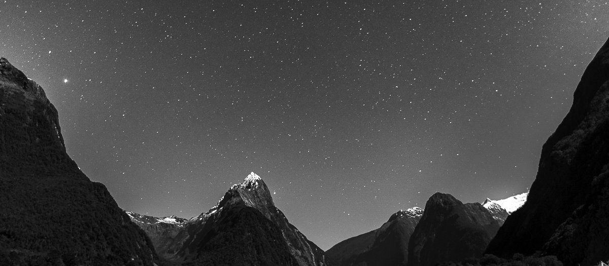16×7, Astrophotography, Black and White, New Zealand, Snow, Winter, milford Sound, south island
