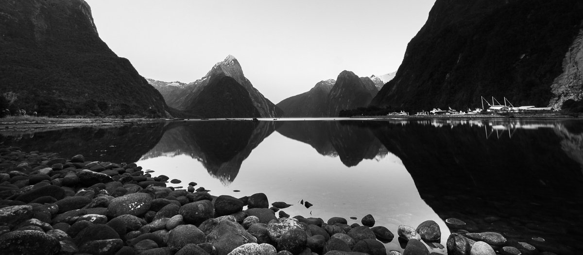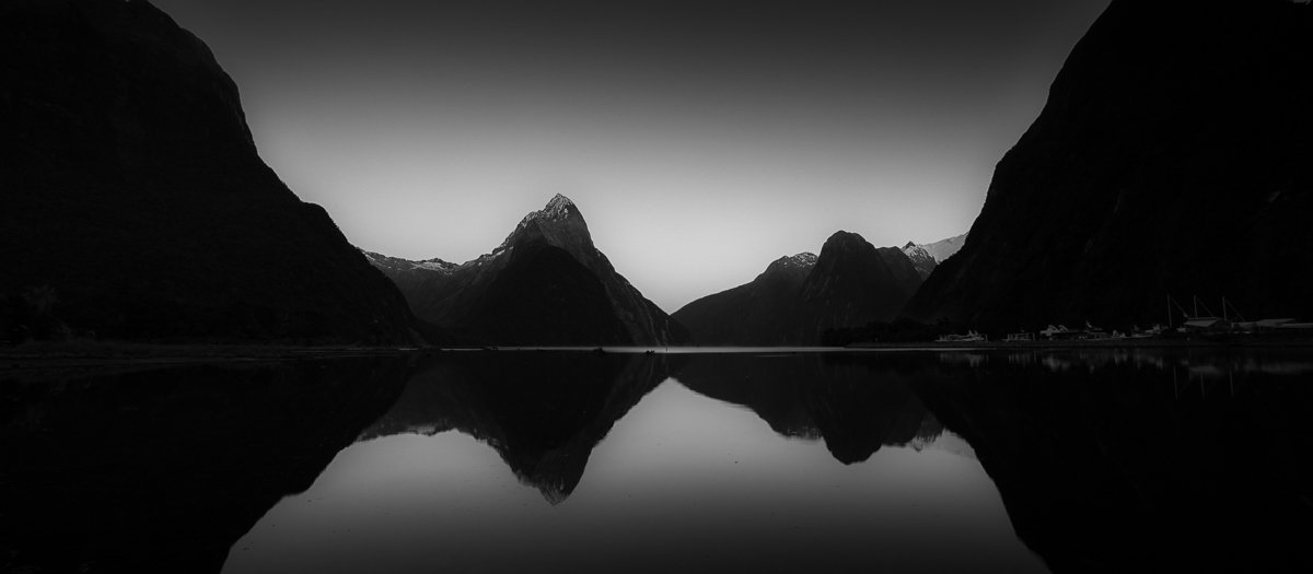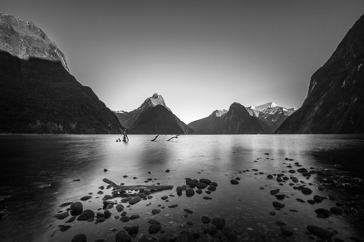 16×7, Black and White, New Zealand, Snow, Winter, milford Sound, south island