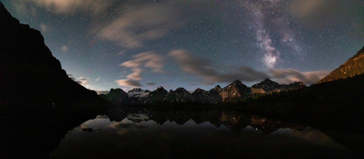 16×7, Alberta, Astrophotography, Canada, Canadian Rockies, Lake Louise, Landscape, Larch Valley, Milkyway, Night, Stars