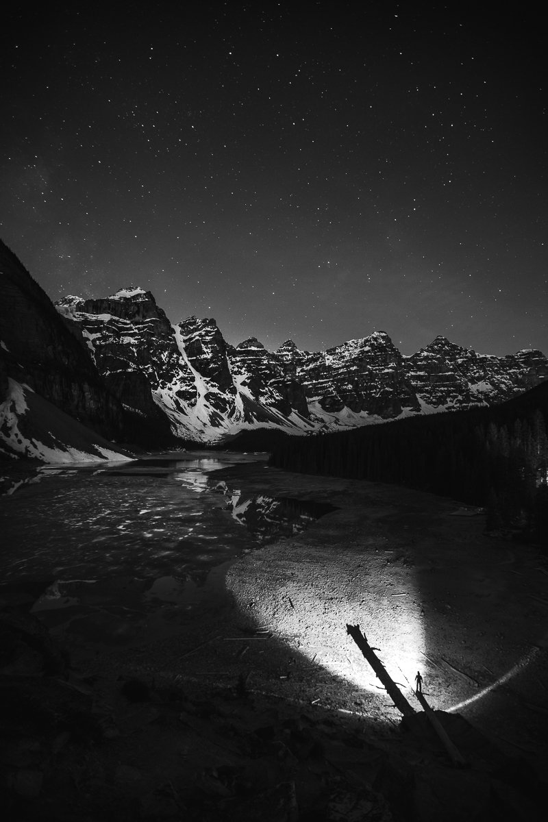 2×3, Alberta, Astrophotography, Banff national park, Black and White, Canada, Canadian Rockies, Landscape, Moraine Lake, Night, Stars