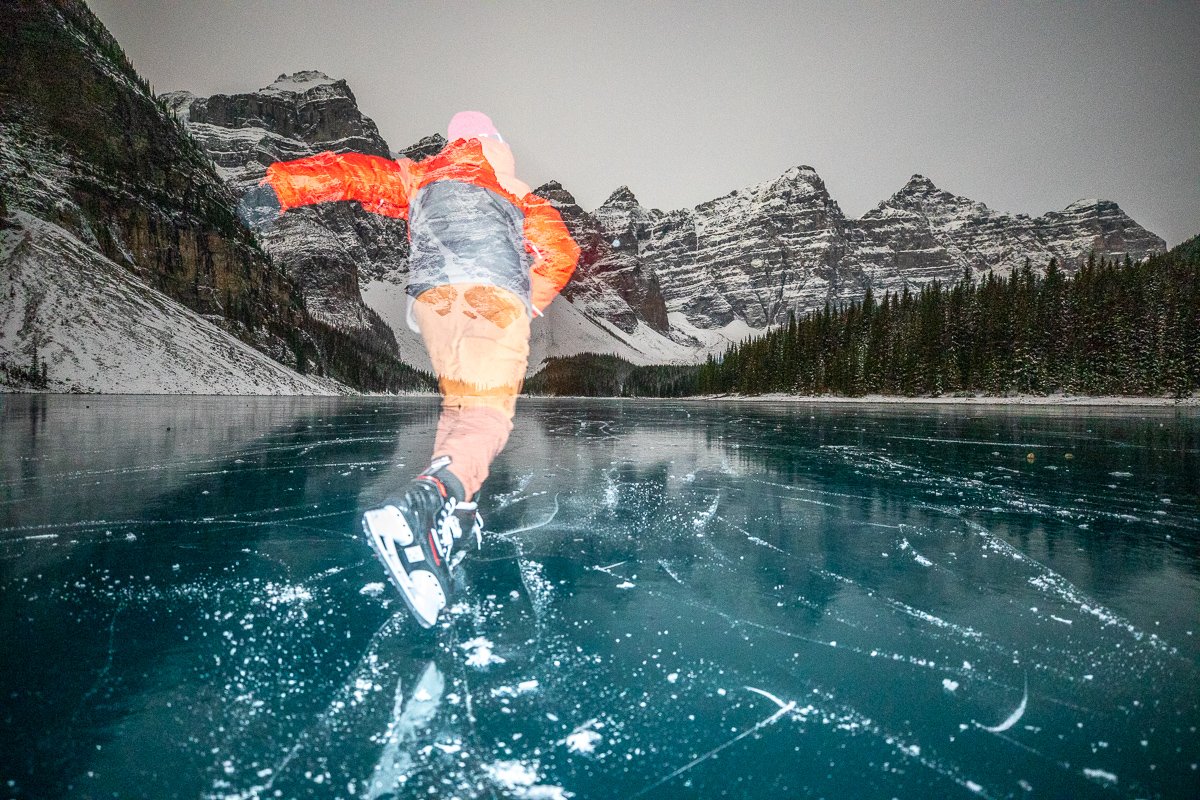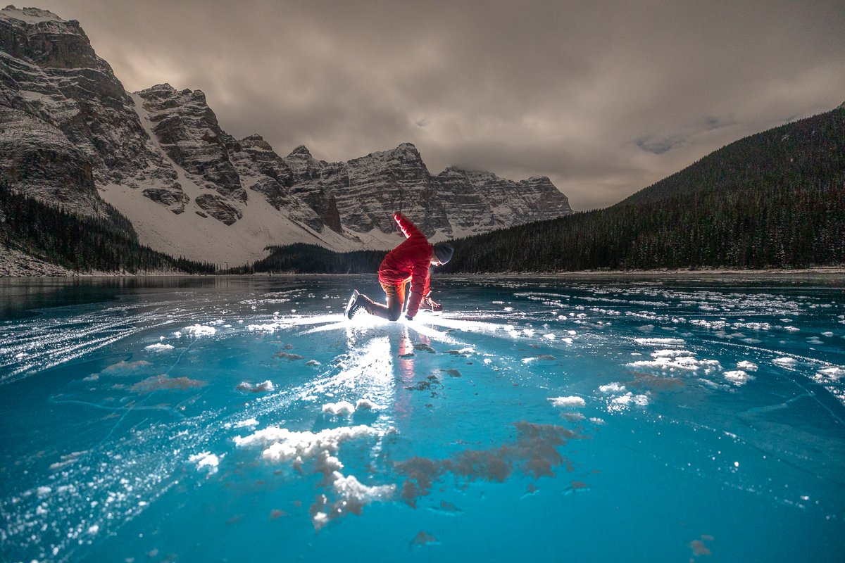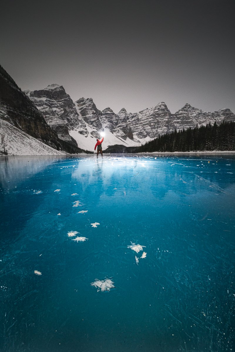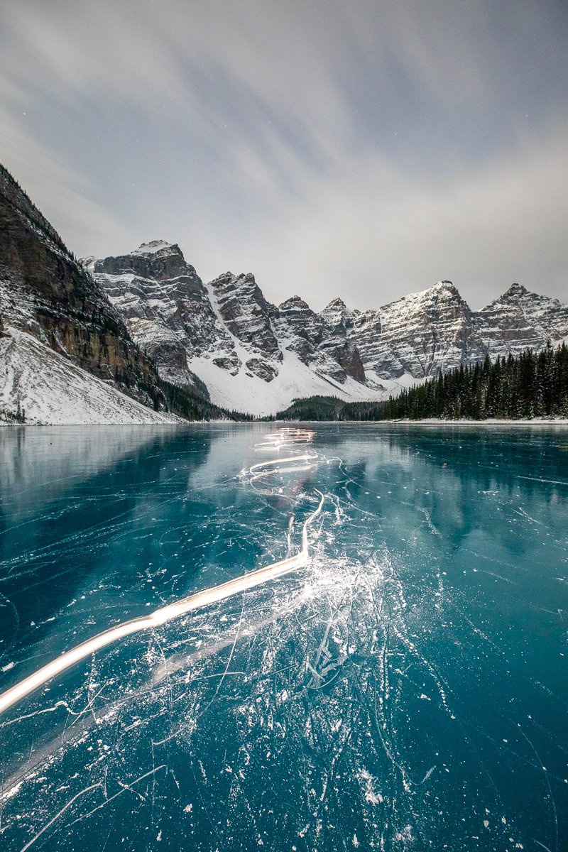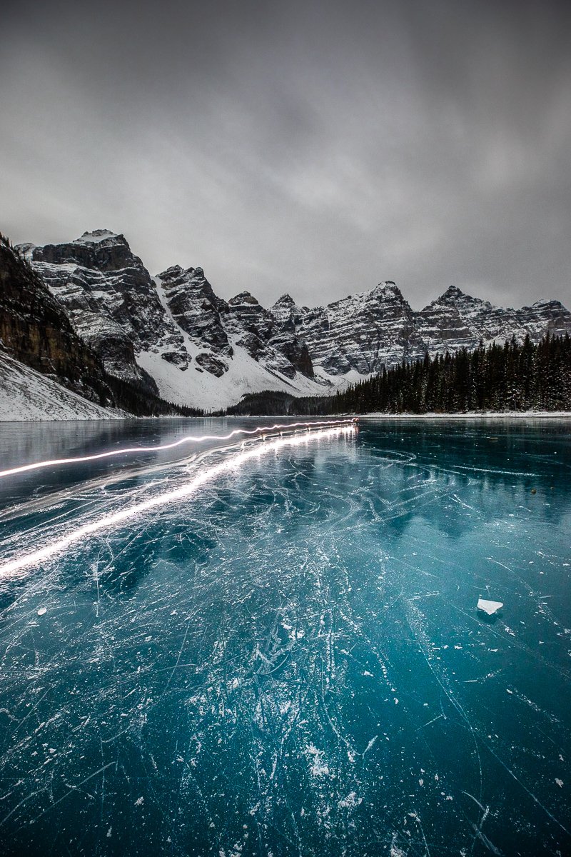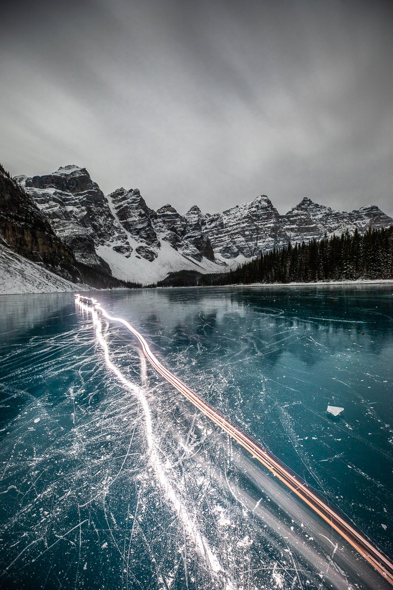 2×3, Alberta, Canada, Canada Rockies, Canadian Rockies, Frozen Lake, Light trails, Moraine Lake