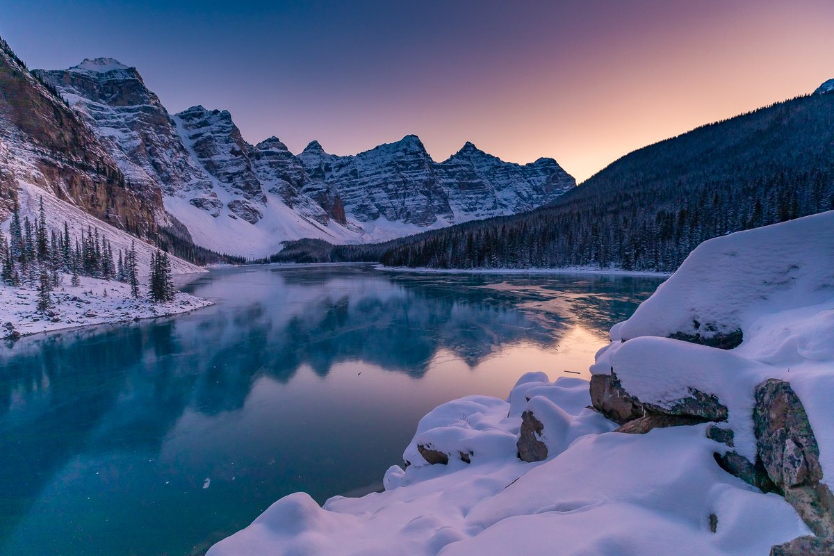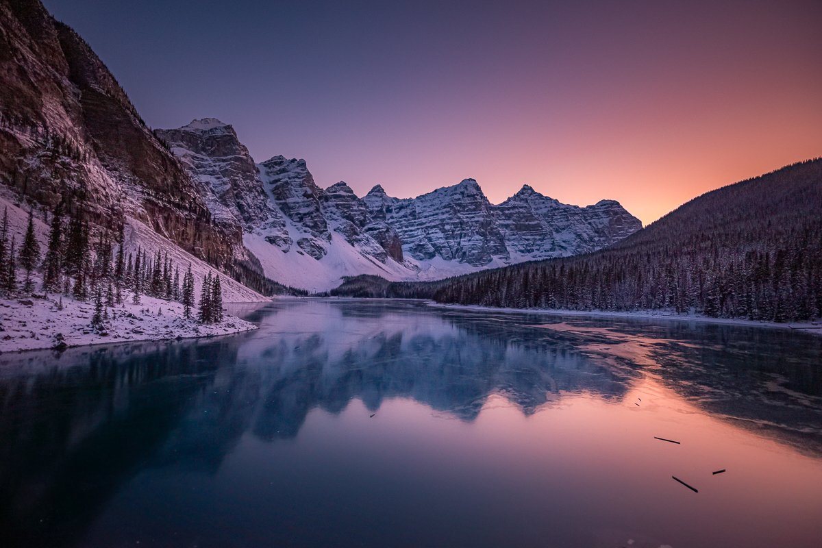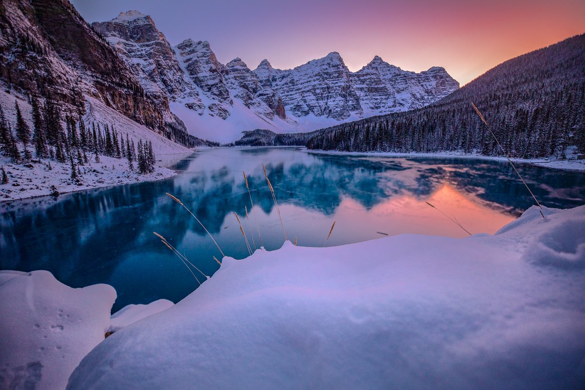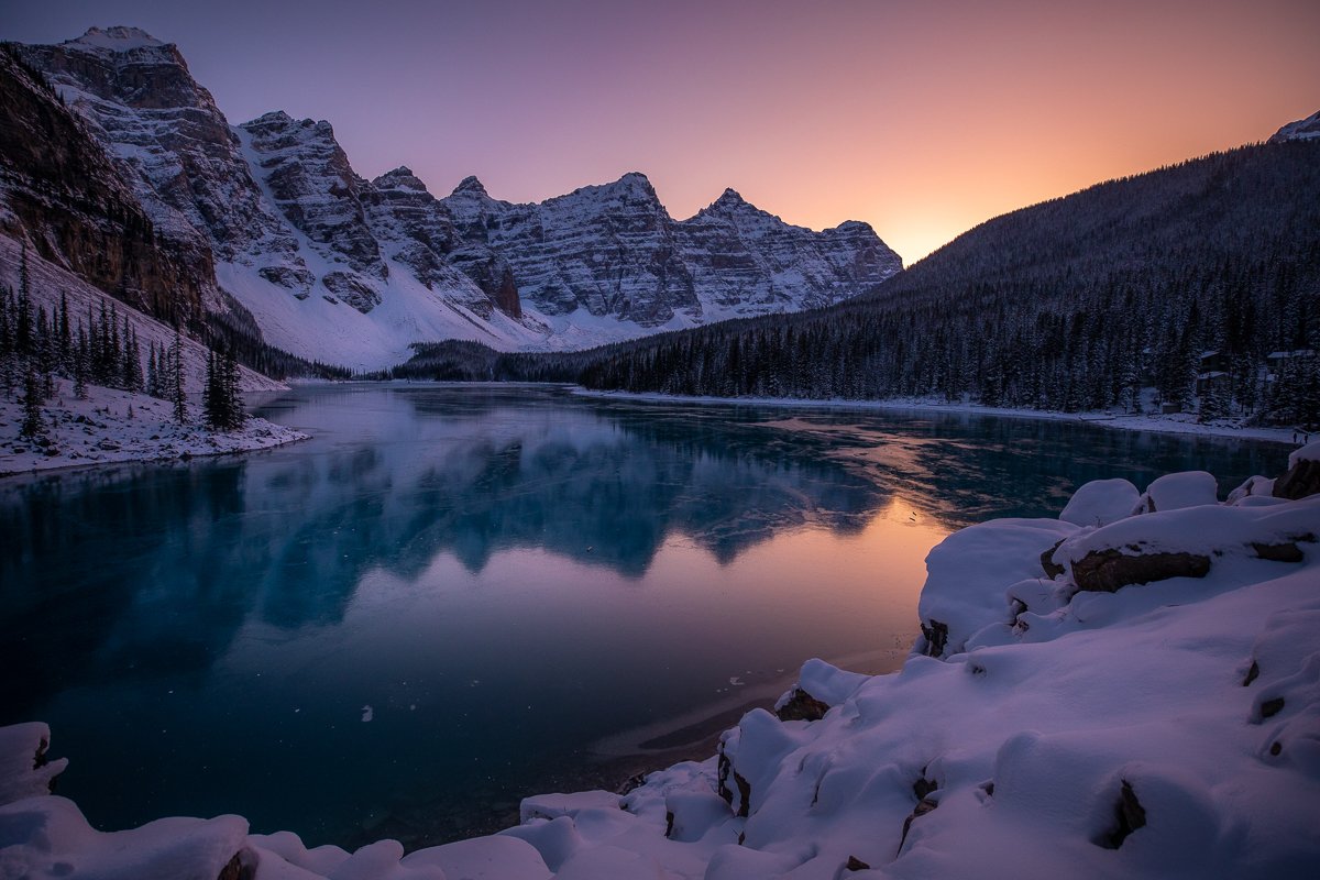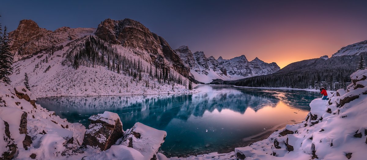 16×7, Alberta, Canada, Canada Rockies, Canadian Rockies, Moraine Lake, Sunset