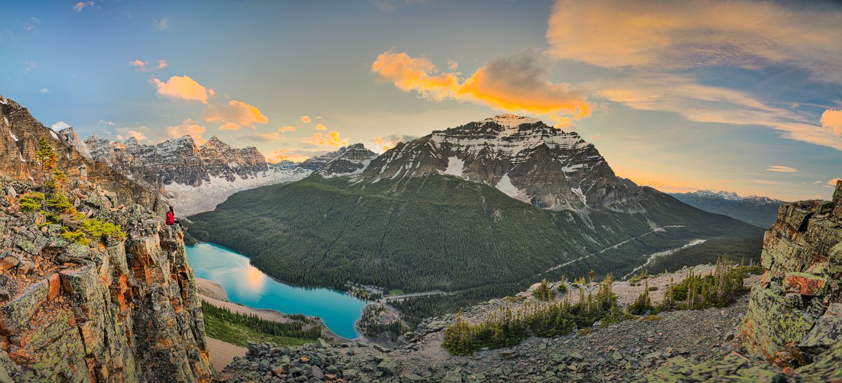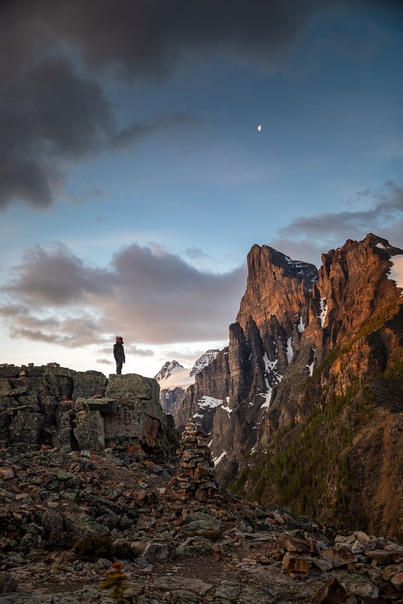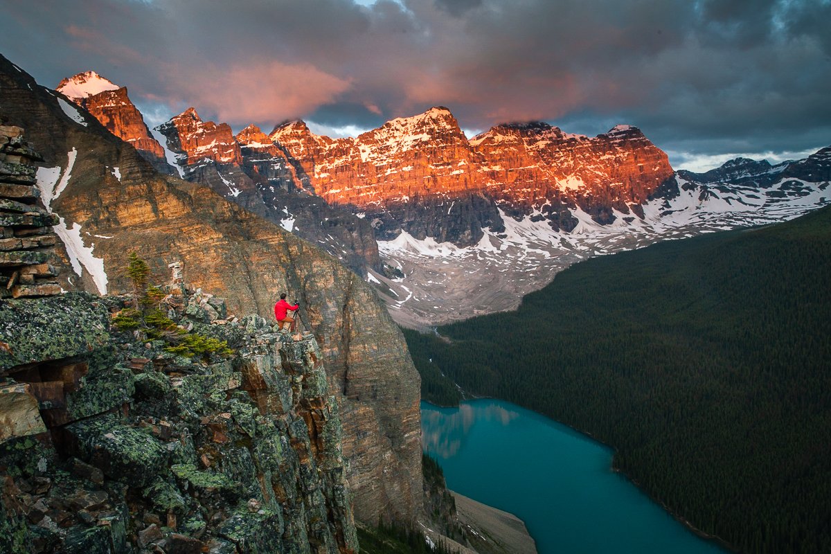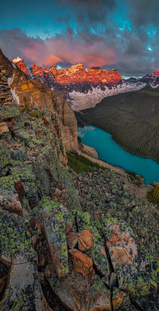 2×3, Alberta, Banff national park, Canada, Canadian Rockies, Lake, Landscape, Moraine Lake, Mountain, Sunrise, self-portrait