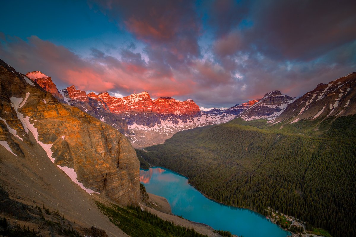 2×3, Alberta, Banff national park, Canada, Canadian Rockies, Lake, Landscape, Moraine Lake, Mountain, Sunset