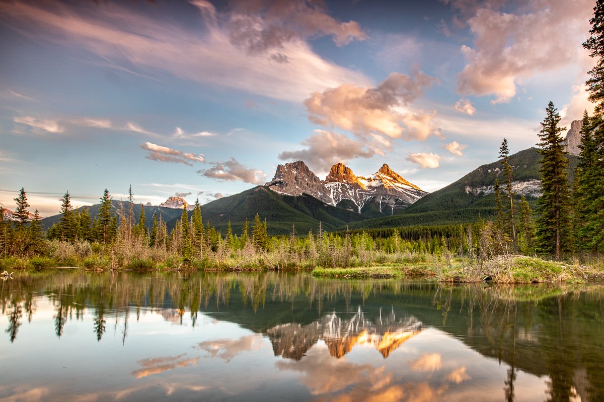 2×3, Alberta, Banff national park, Canada, Canadian Rockies, Canmore, Lake, Landscape, Mountain, Sunset, Three sisters