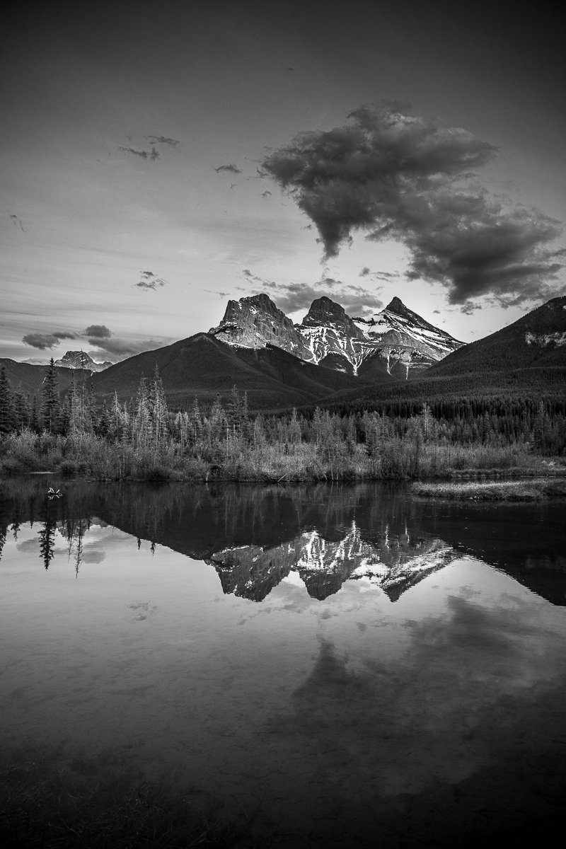 2×3, Alberta, Astrophotography, Banff national park, Black and White, Canada, Canadian Rockies, Canmore, Lake, Landscape, Mountain, Night, Stars, Three sisters