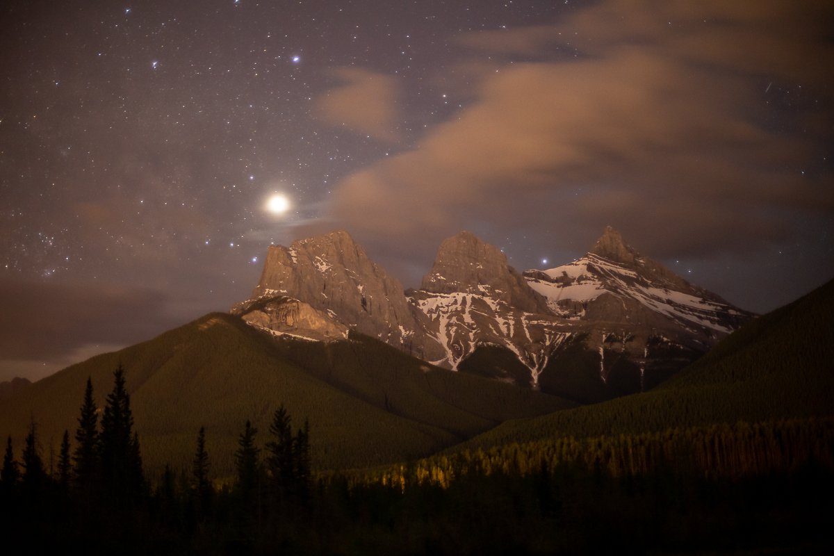2×3, Alberta, Astrophotography, Banff national park, Canada, Canadian Rockies, Canmore, Lake, Mountain, Night, Stars, Three sisters