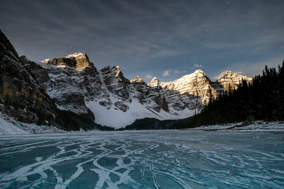 2×3, Alberta, Canada, Canada Rockies, Canadian Rockies, Frozen Lake, Moraine Lake, Night photography, Winter