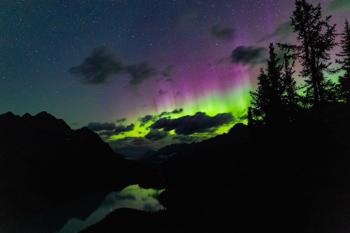 2×3, Alberta, Astrophotography, Aurora Borealis, Banff national park, Canada, Canadian Rockies, Landscape, Night, Northern Light, Peyto Lake, Stars