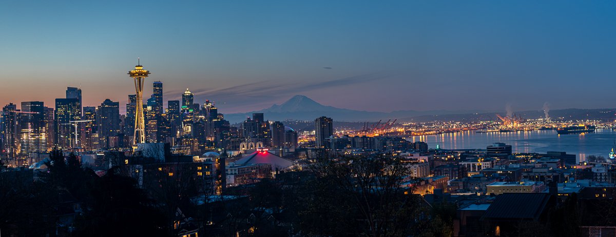 16×7, Cityscape, Night, Seattle, Sunset, United States, Washington State