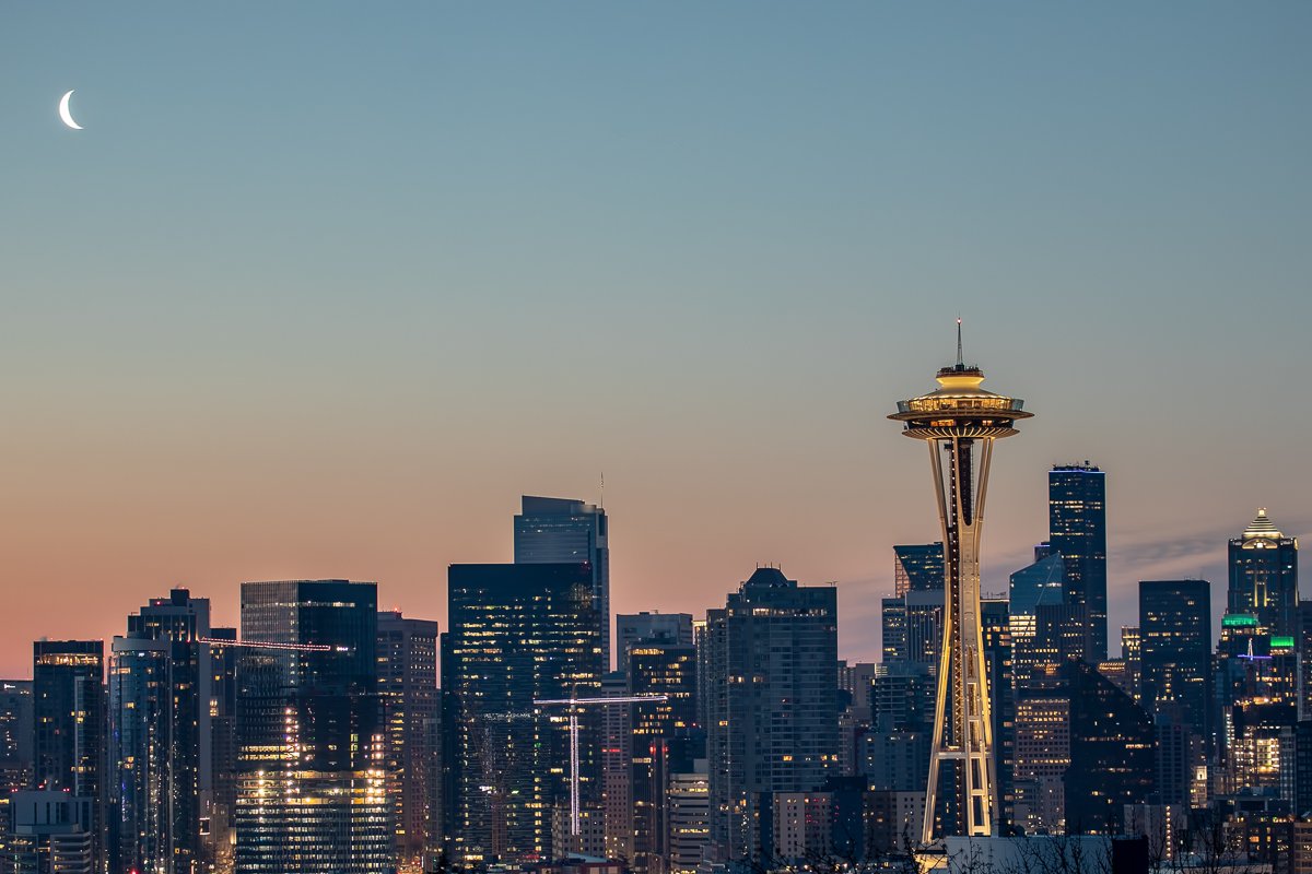 Cityscape, Night, Seattle, Sunset, United States, Washington State