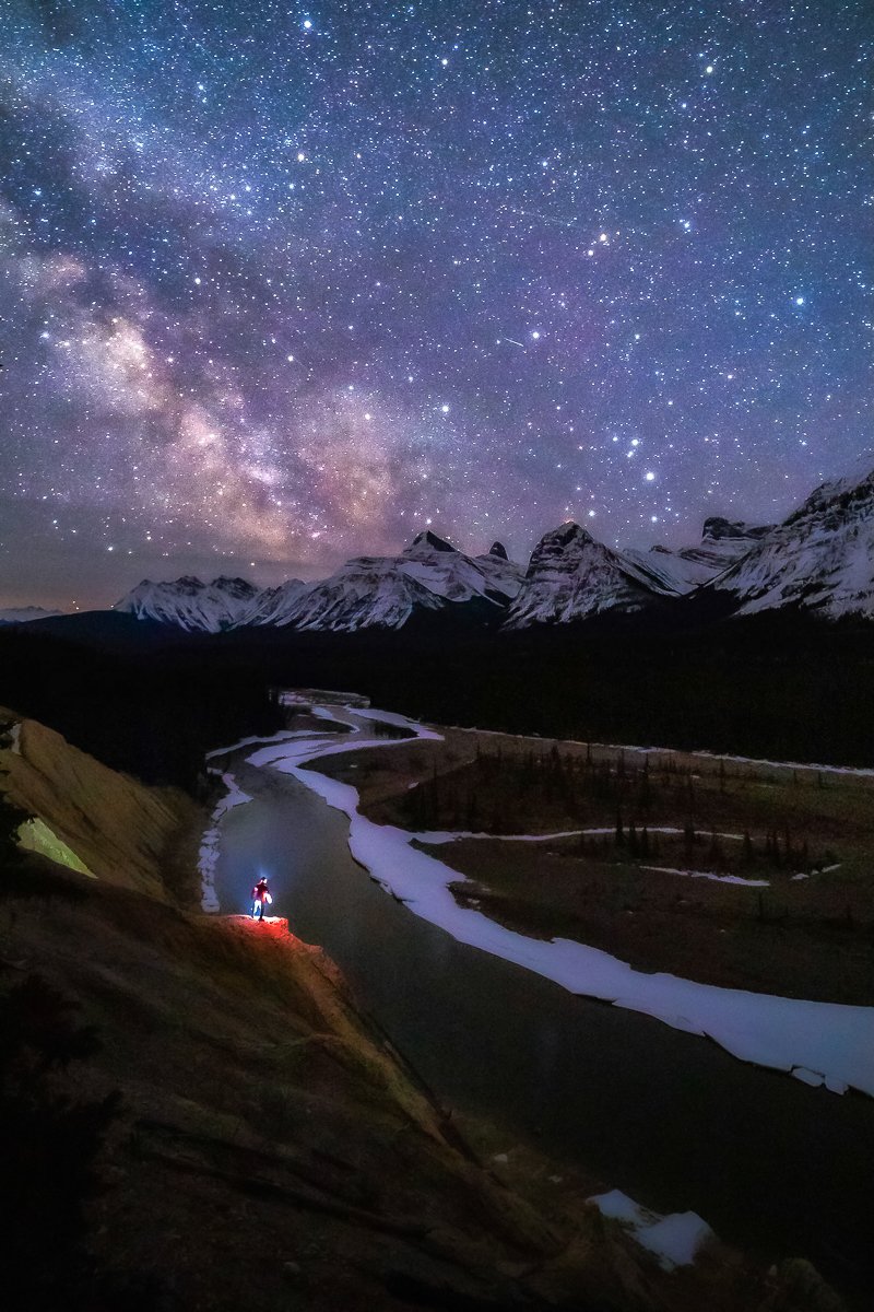 2×3, Alberta, Astrophotography, Canada, Canadian Rockies, Icefield Parkway, Jasper National Park, Landscape, Mikyway, Mountain, Night photography, Winter, self-portrait