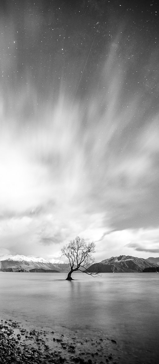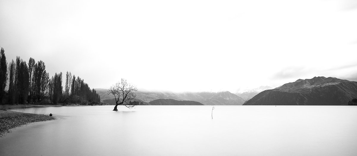16×7, Black and White, New Zealand, Snow, That wanaka tree, Winter, south island, wanaka