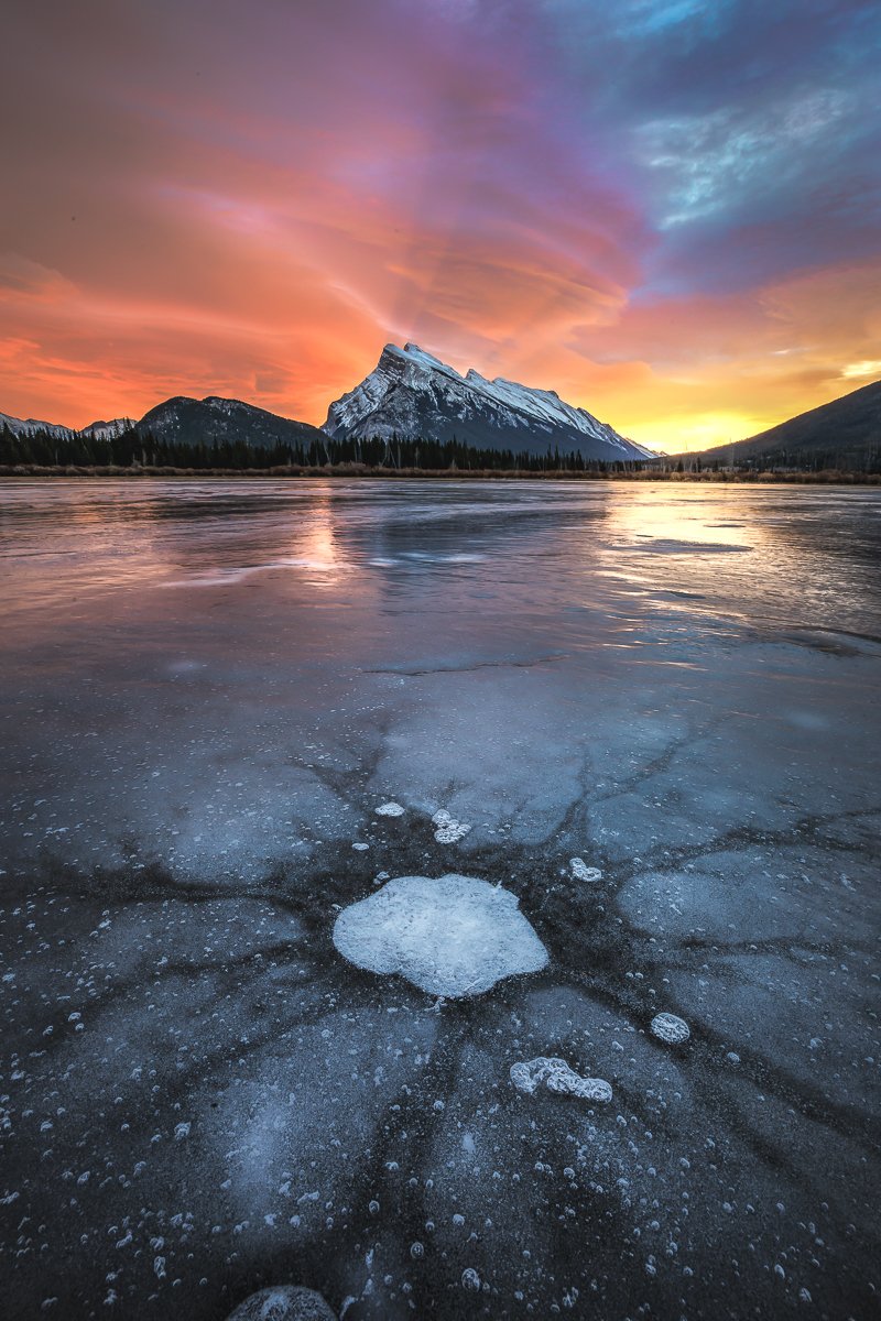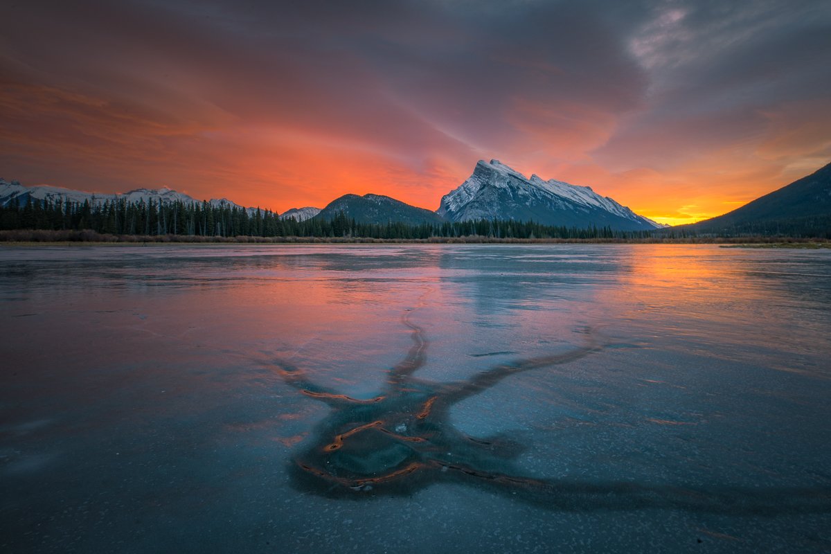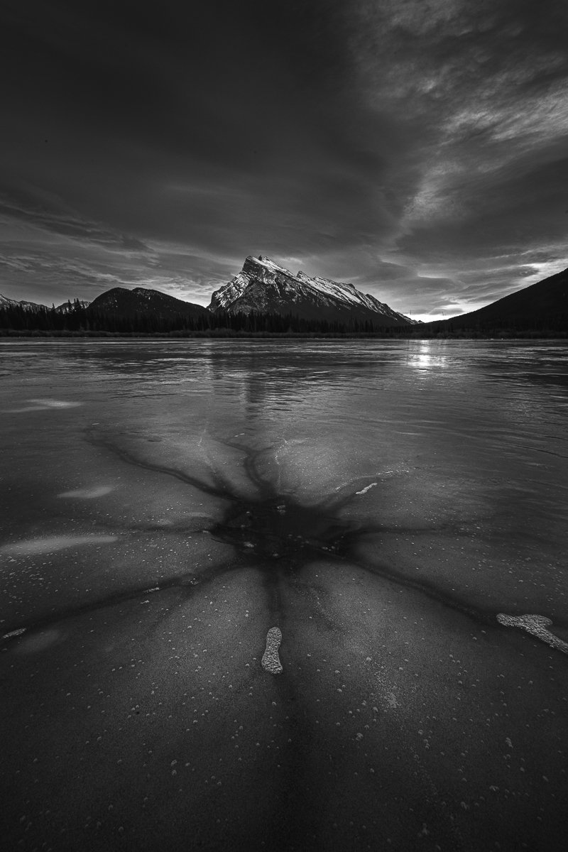2×3, Alberta, Banff national park, Black and White, Canada, Canadian Rockies, Landscape, Snow, Sunrise, Vermilion Lakes, Winter, banff