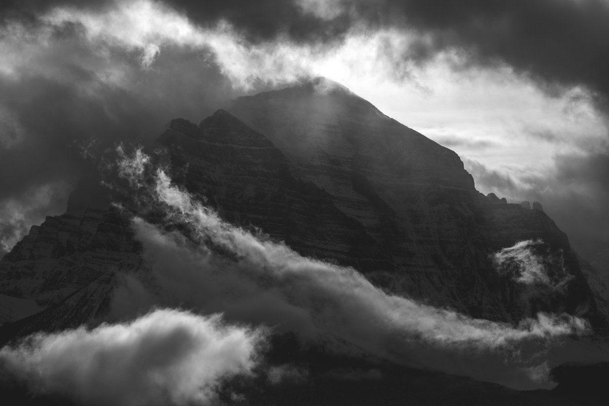 2×3, Alberta, Black and White, Canada, Canadian Rockies, Lake Louise, Landscape, Mountains, Snow, Sunset, Winter