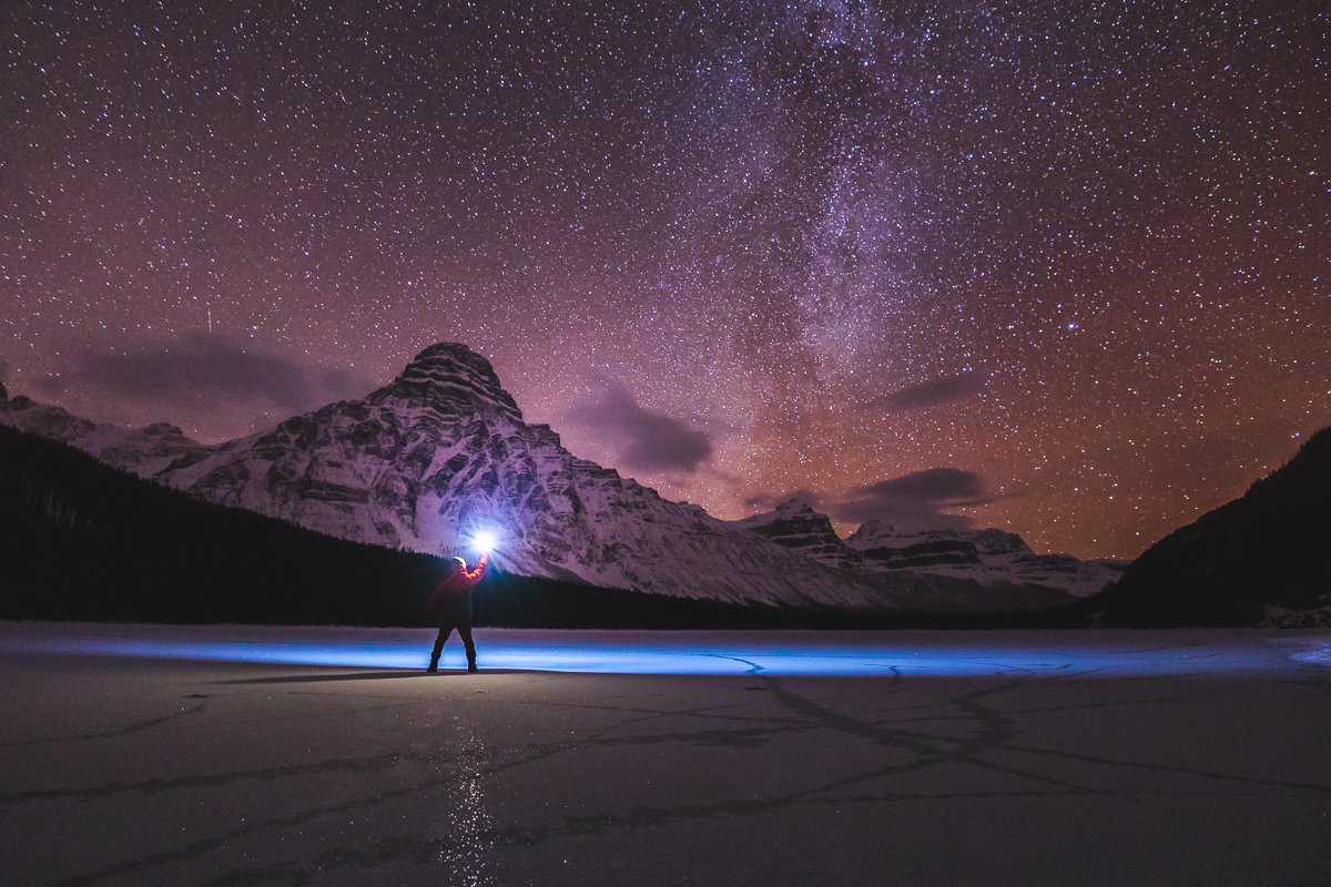 2×3, Alberta, Canada, Canadian Rockies, Lake, Landscape, Mountains, Snow, Stars, Waterfowl lake, Winter, self-portrait