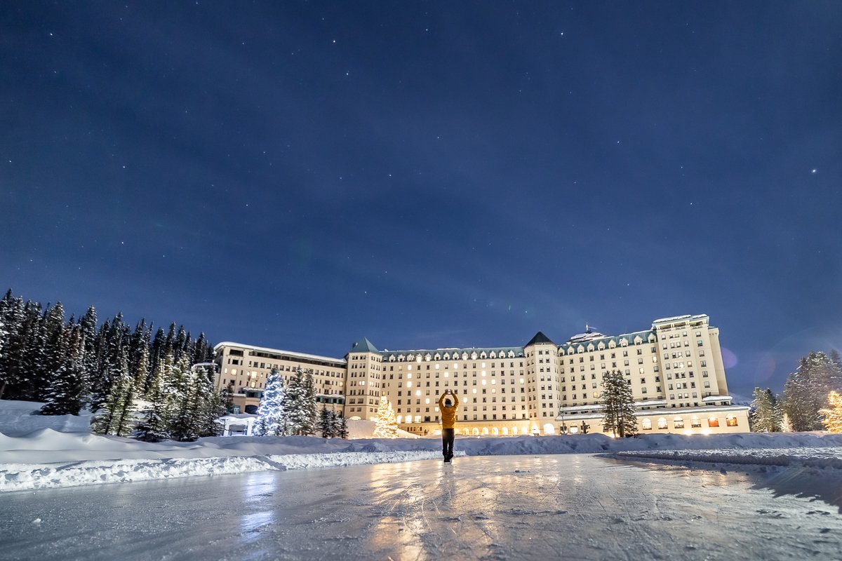 2×3, Alberta, Astrophotography, Canada, Canadian Rockies, Lake Louise, Landscape, Night, Snow, Stars, Winter