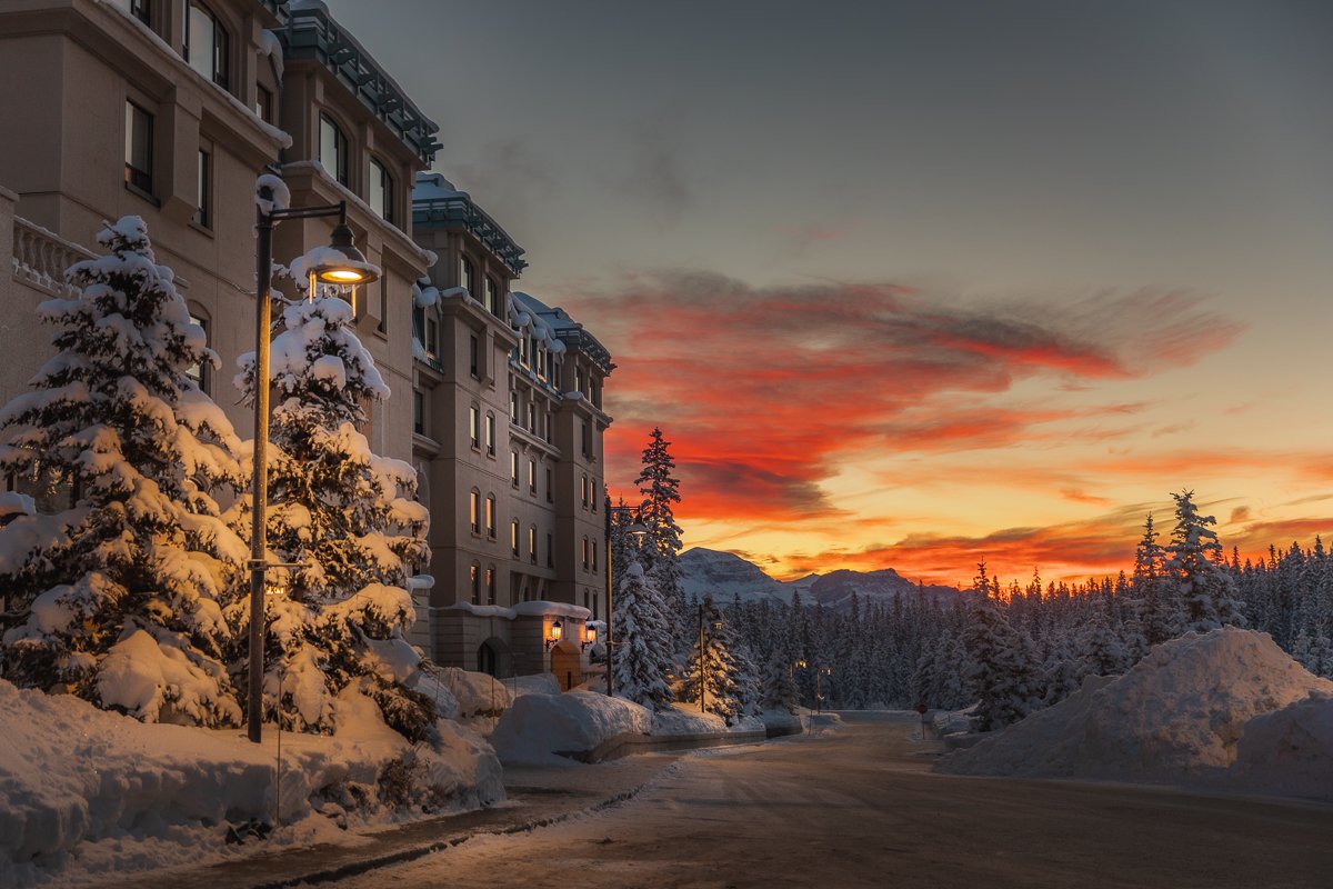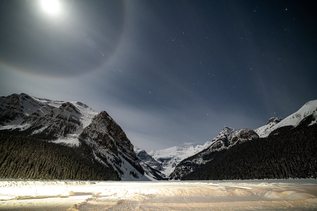 2×3, Alberta, Astrophotography, Canada, Canadian Rockies, Lake Louise, Landscape, Snow, Sunset, Winter