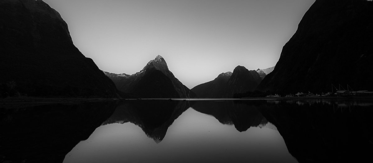 16×7, Black and White, New Zealand, Snow, Winter, milford Sound, south island