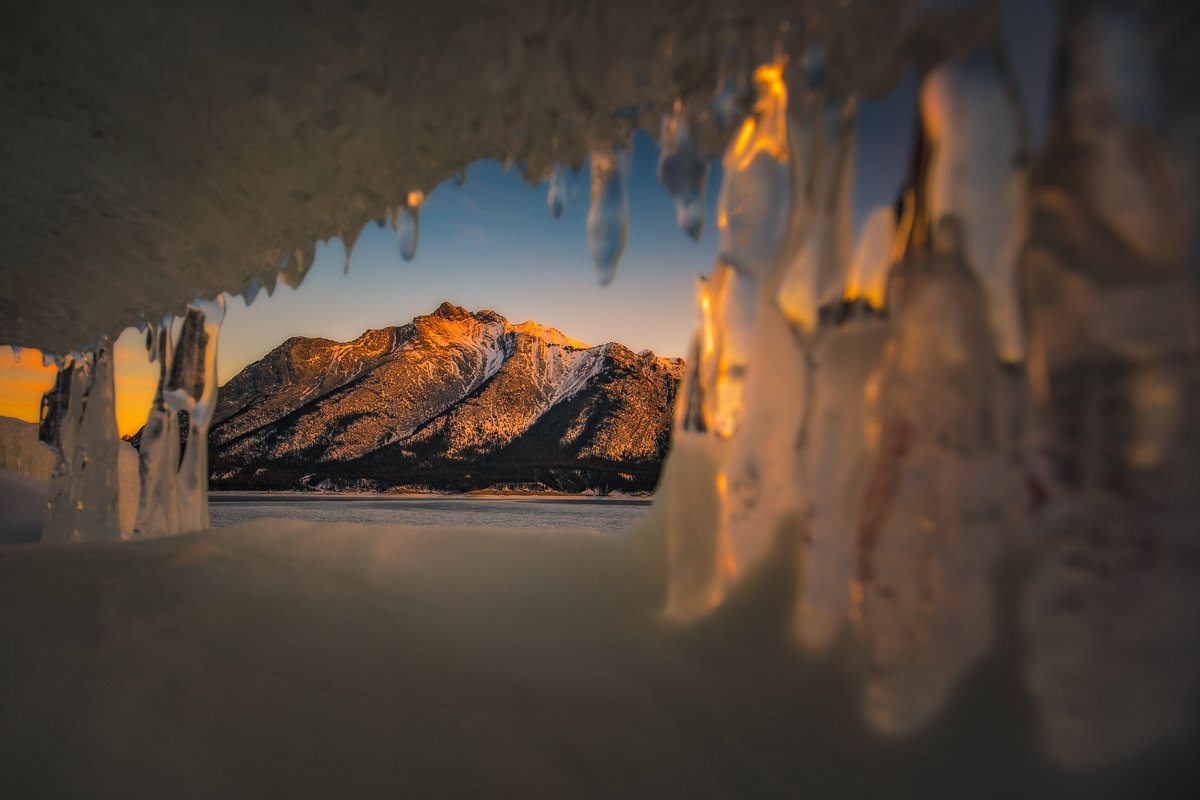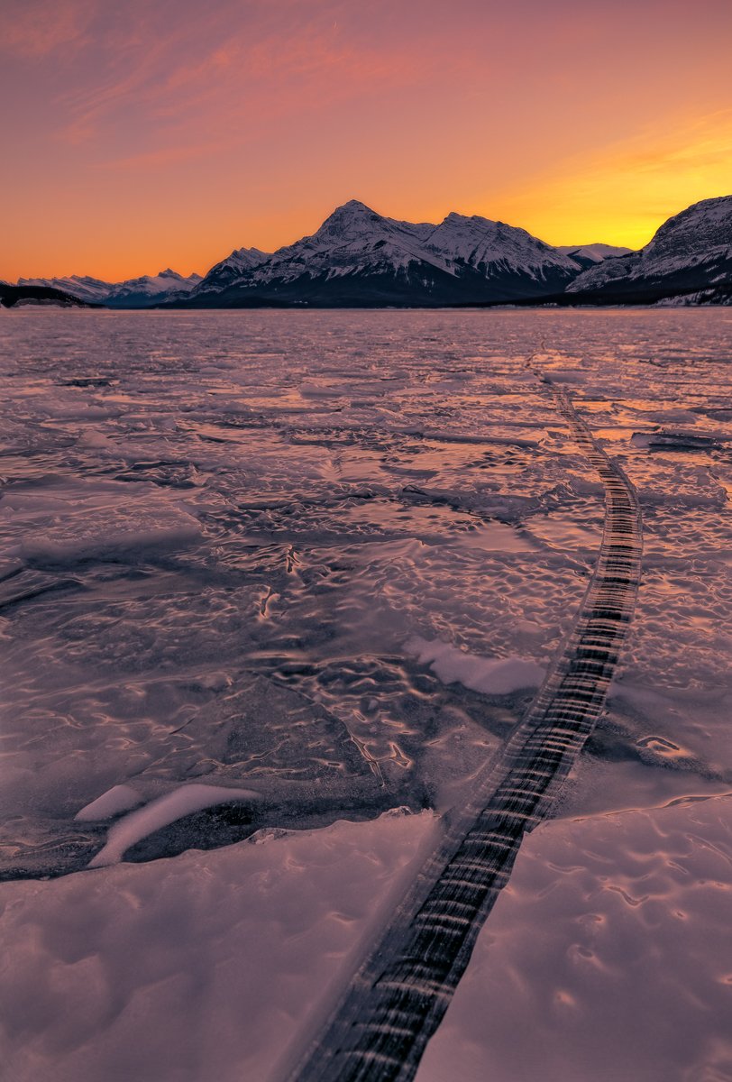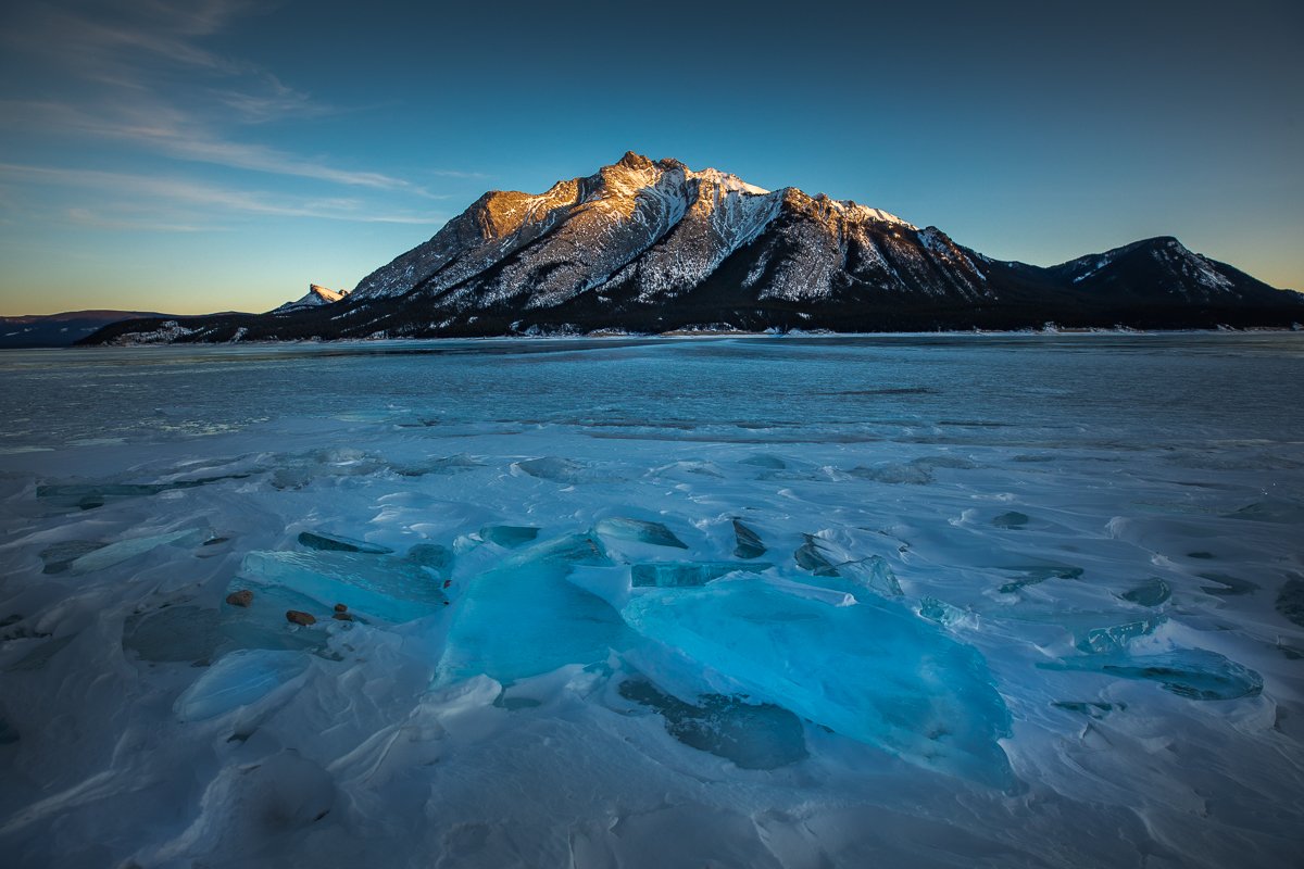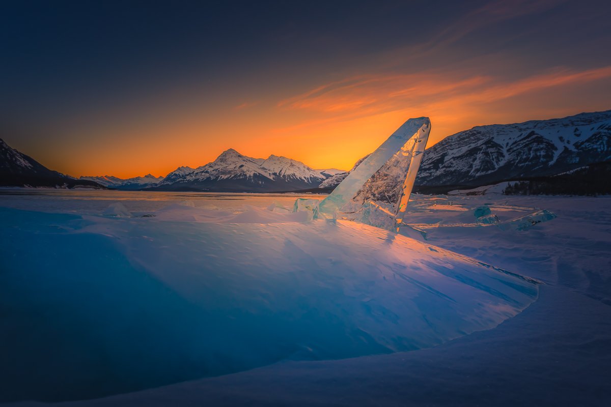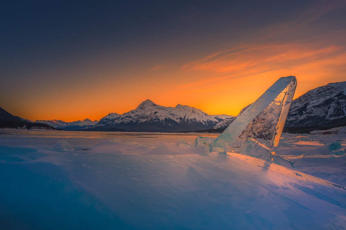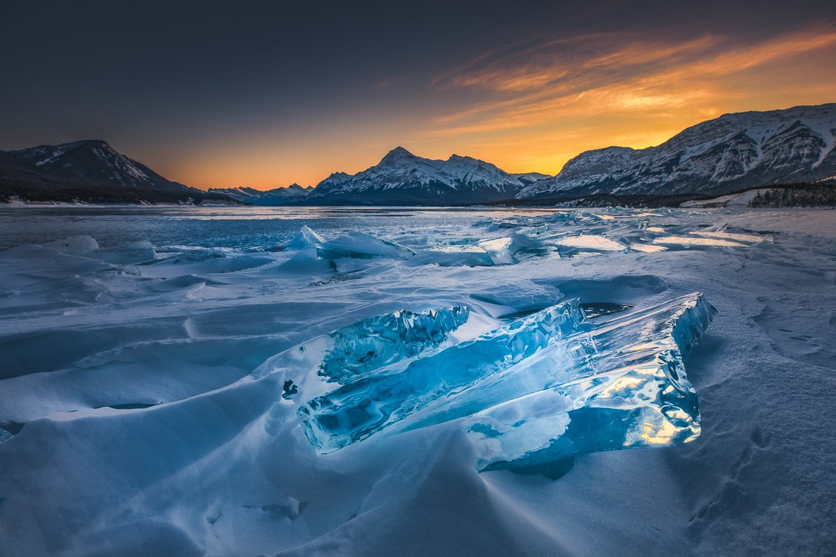 2×3, Abraham lake, Alberta, Canada, Canadian Rockies, Lake, Landscape, Mountains, Snow, Sunset, Winter