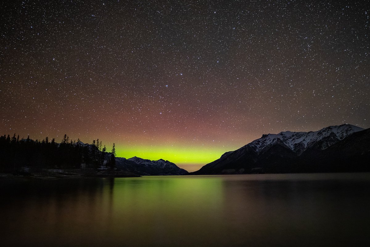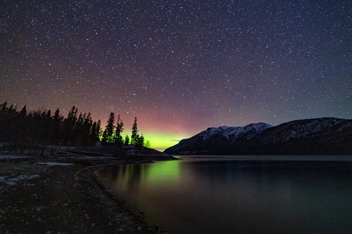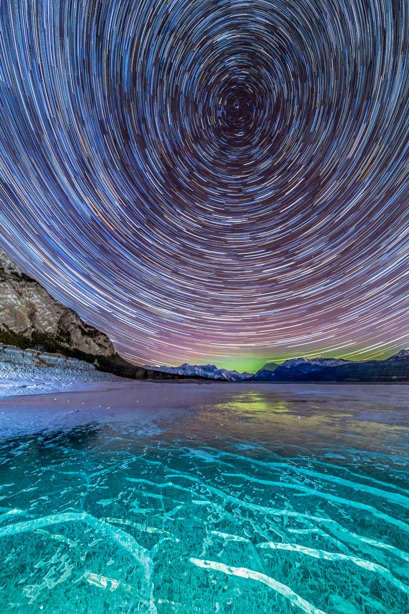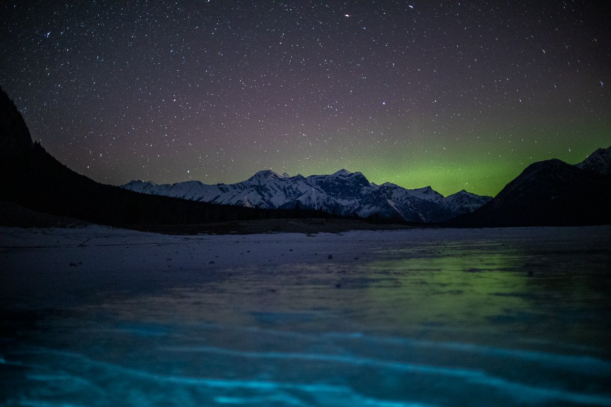 2×3, Abraham lake, Alberta, Astrophotography, Aurora Borealis, Canada, Canada Rockies, Canadian Rockies, Lake, Landscape, Mountains, Northern Light, Snow, Stars, Winter