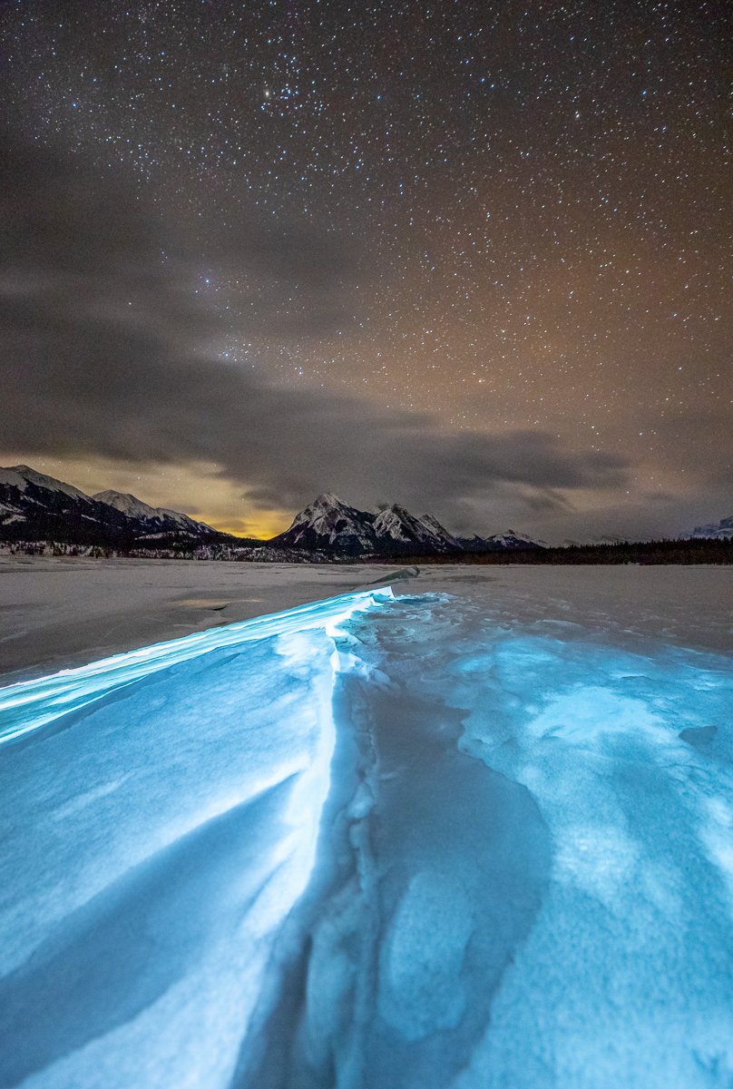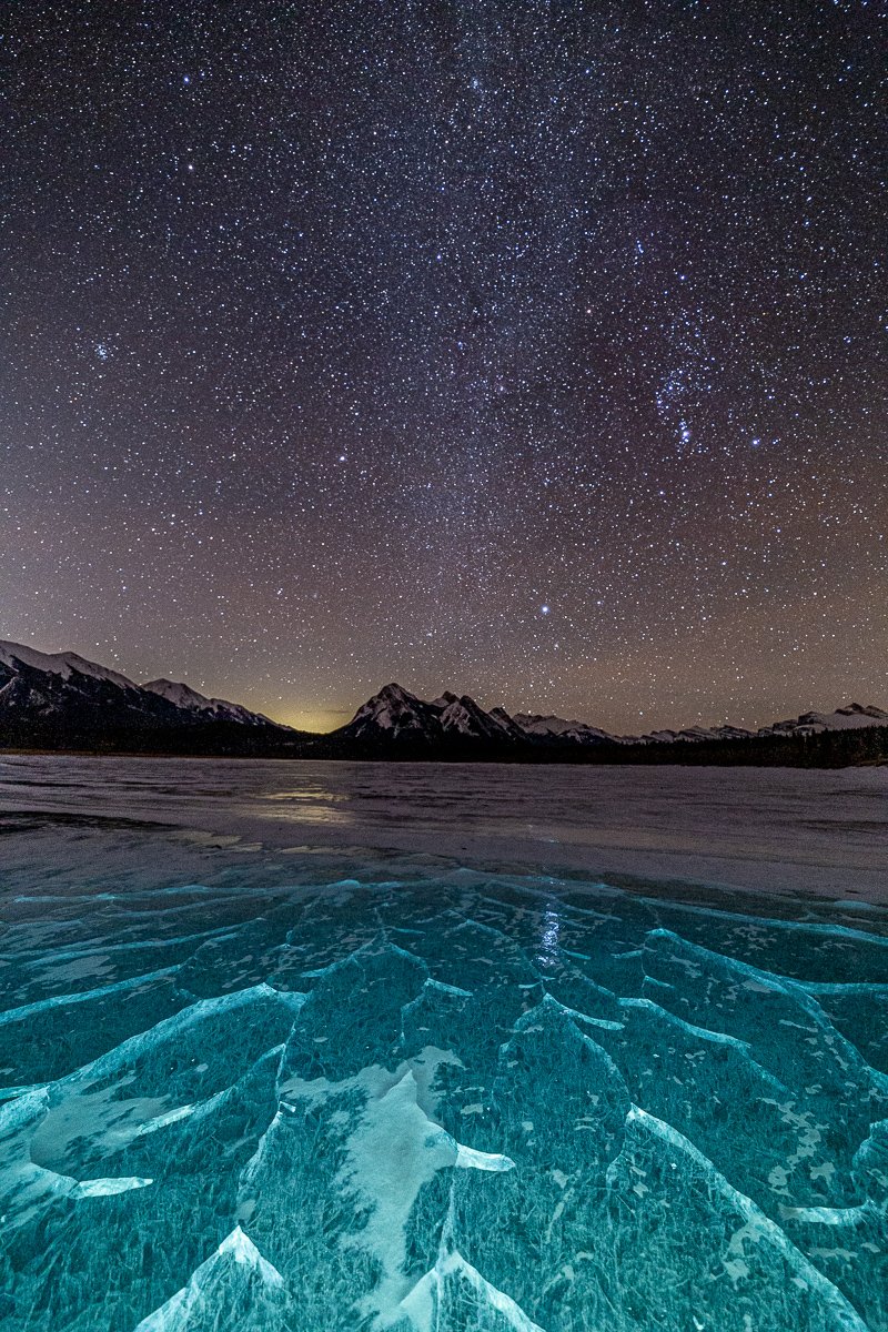 2×3, Abraham lake, Alberta, Astrophotography, Canada, Canadian Rockies, Lake, Landscape, Mountains, Snow, Sunset, Winter